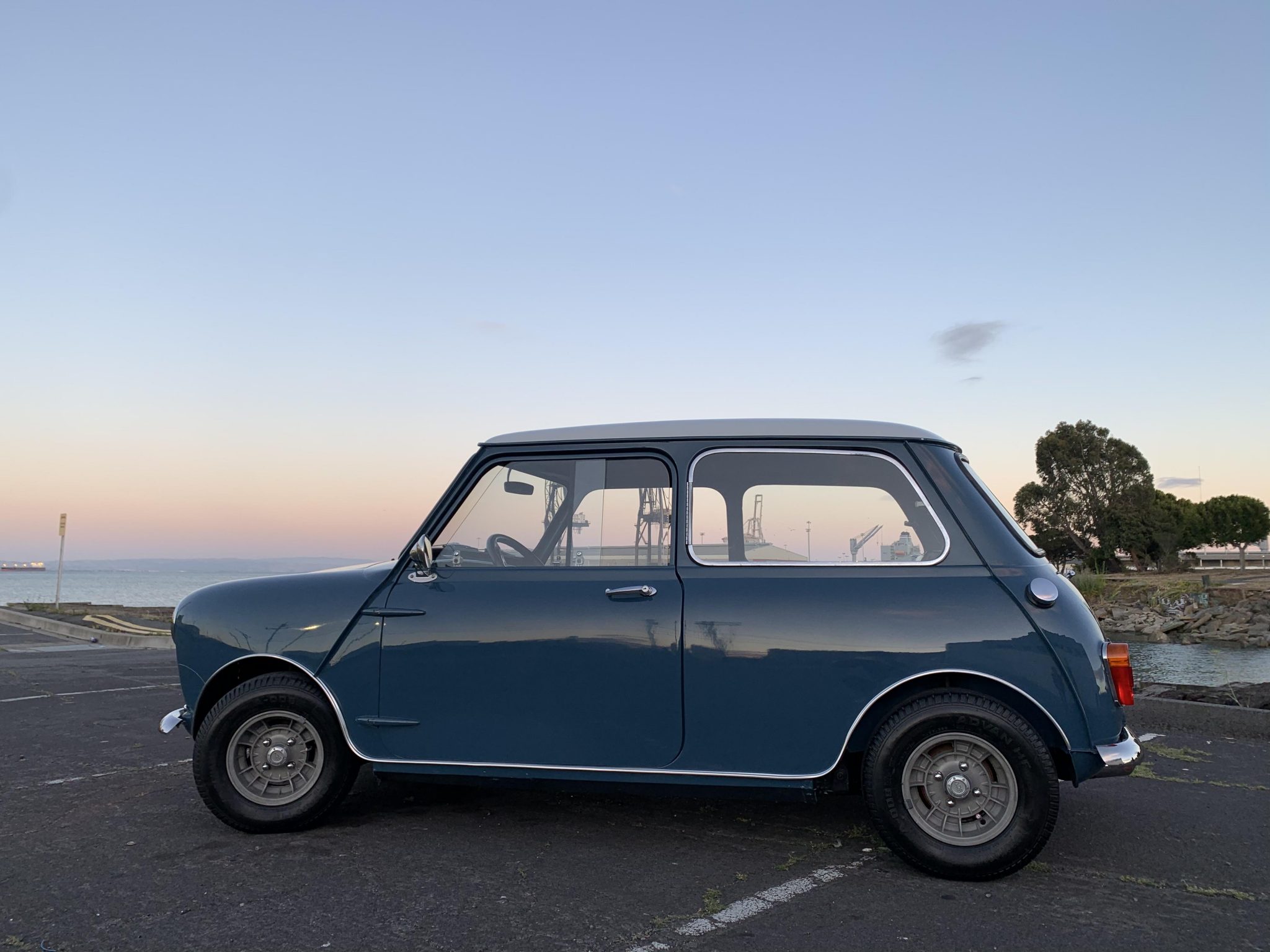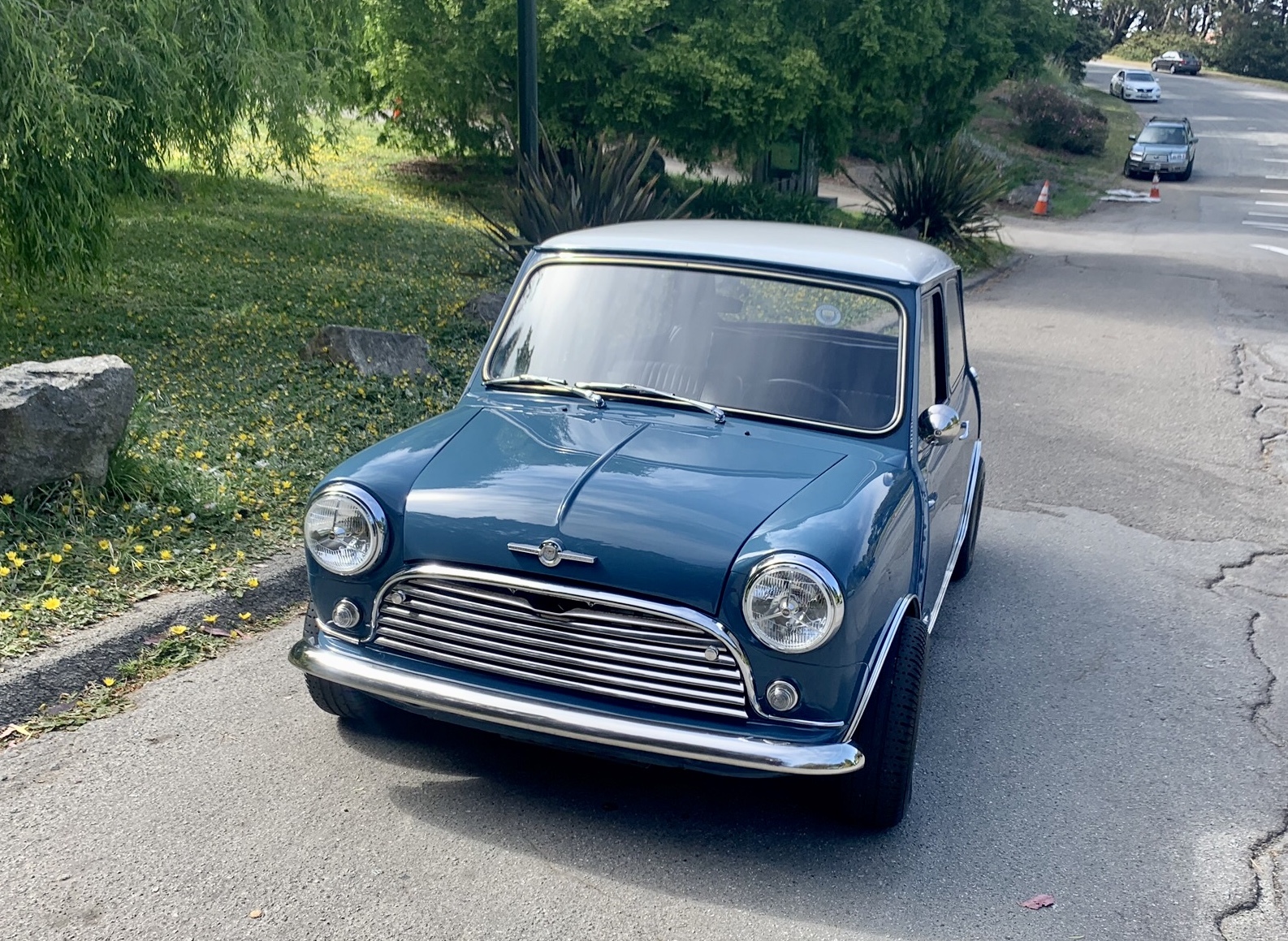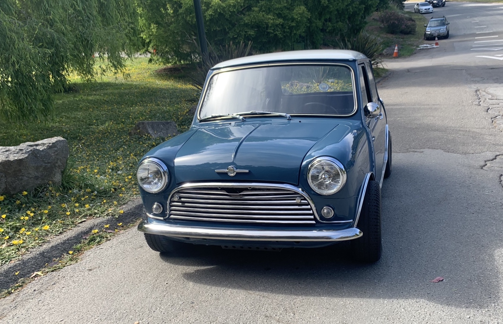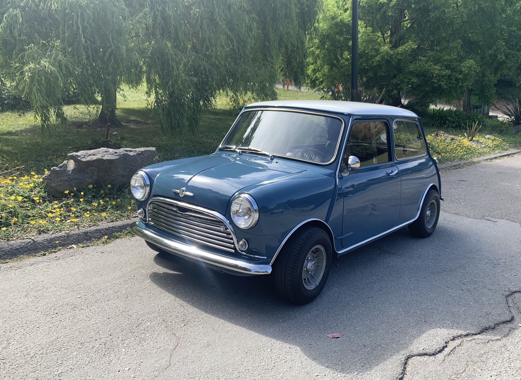 JA Pearce Magna 10″ wheels are mounted with Yokohama A008 tires. Suspension work during current ownership has included installing new KYB shocks, outer CV joints, knuckles, bearings, and ball joints. The seller has also fitted 7.5″ Cooper S front disc brakes with new calipers and replaced the rear brake hoses, rear wheel cylinders, and the brake master cylinder.
