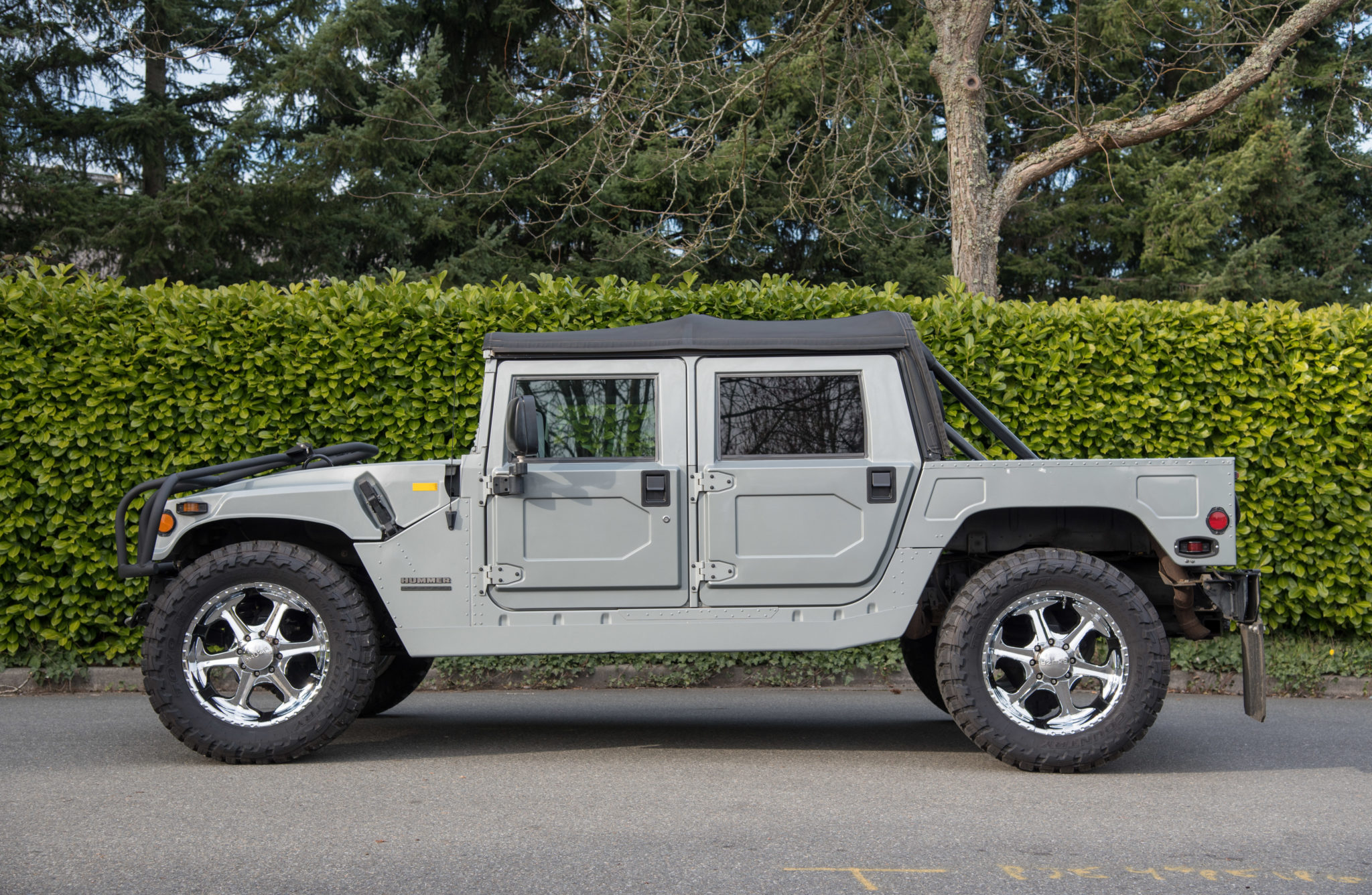 Aftermarket 22″ chrome wheels are wrapped in Toyo Open Country M/T tires sized 37×13.50″. The four-wheel independent suspension features coil springs and portal axles. Inboard disc brakes are present at each corner, which the seller states have 15% pad life remaining. The TT4 light is noted to be illuminated. The factory wheels and tires are also included in the sale.