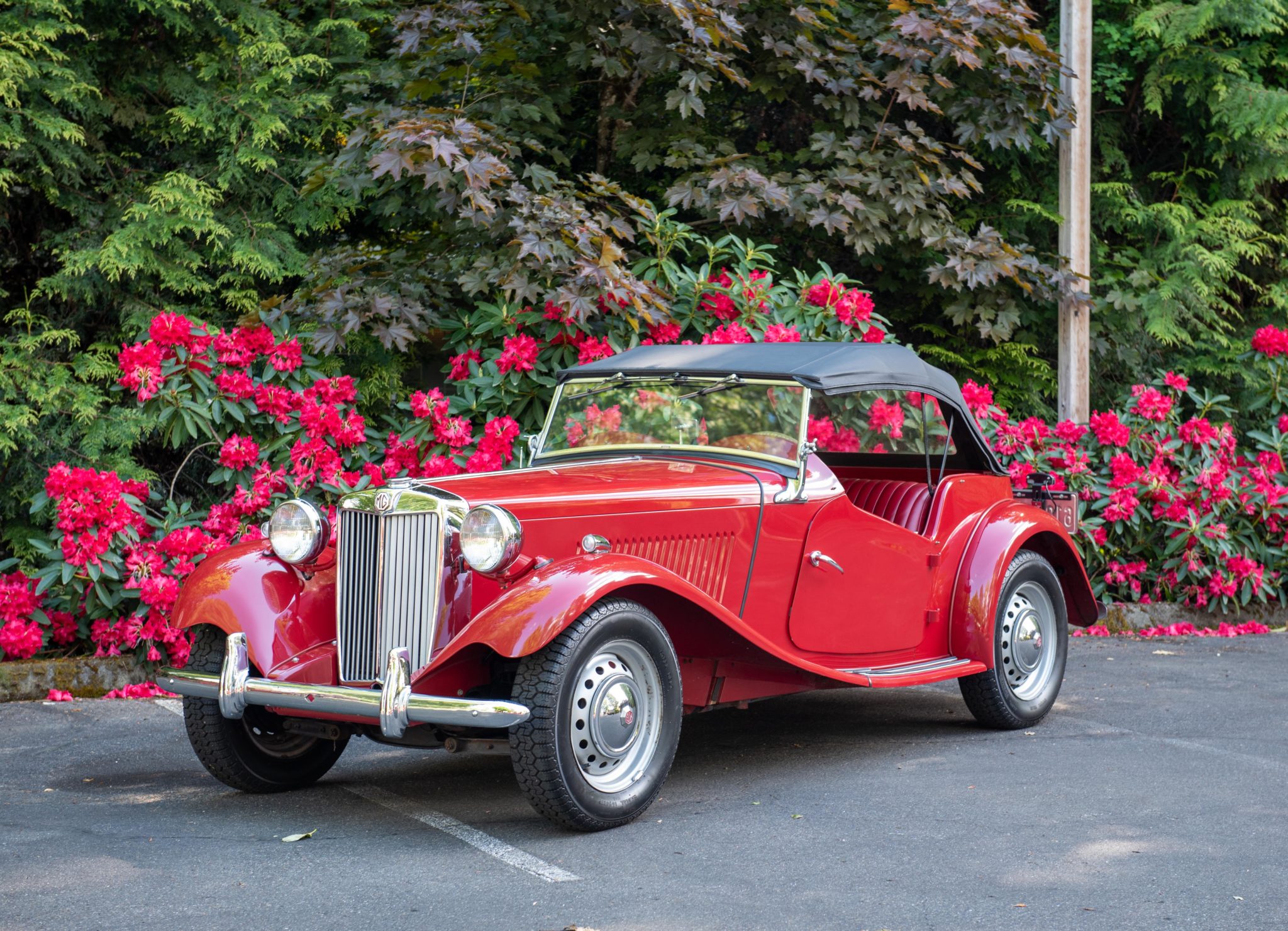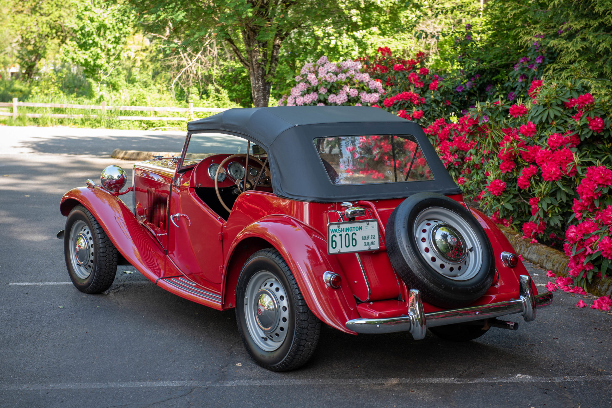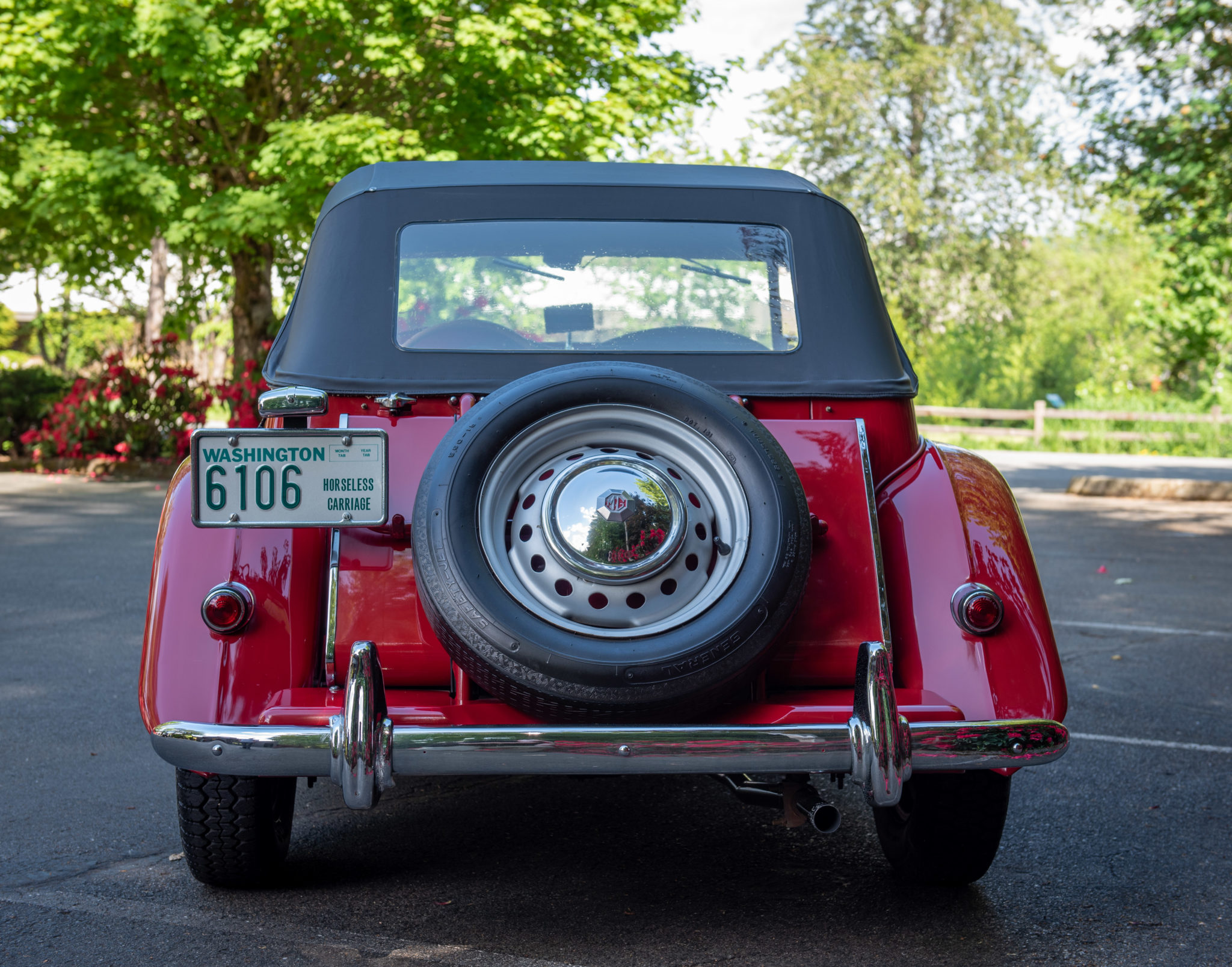 Painted 15″ steel wheels wear chrome MG hubcaps and 165-SR15 radial tires. Independent front suspension, rack-and-pinion steering, and four-wheel drum brakes were standard equipment.