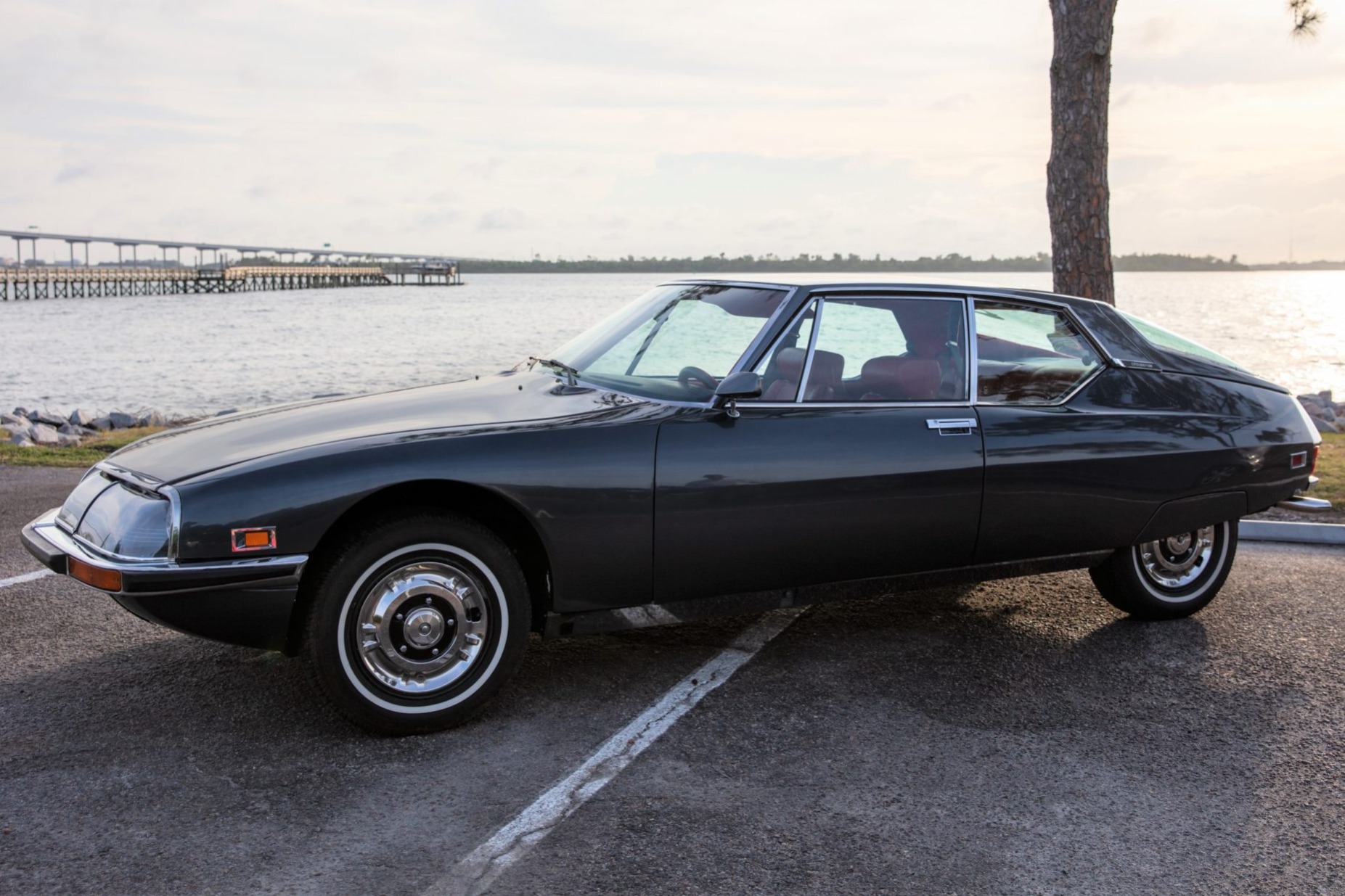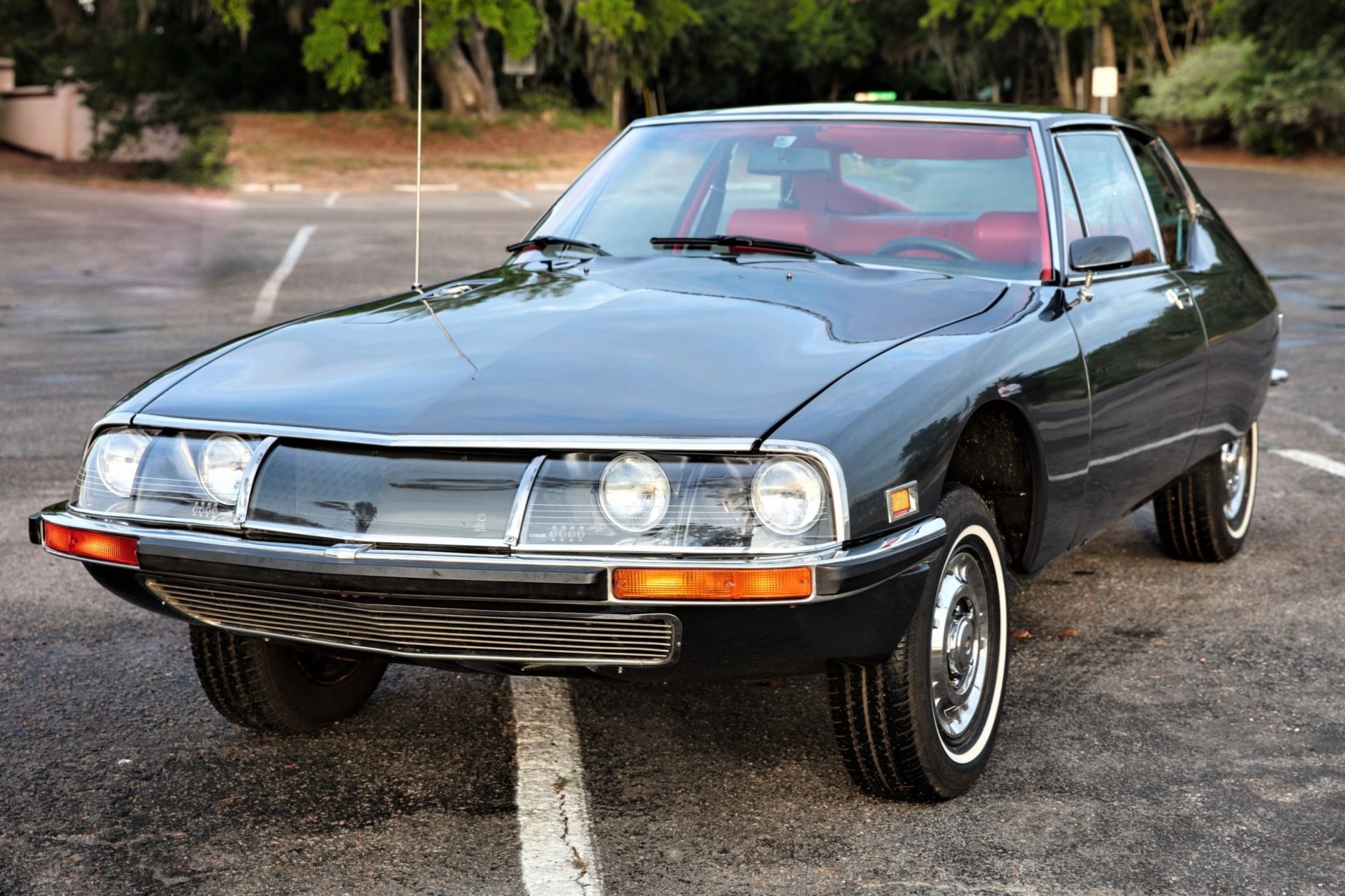 Black 15″ steel wheels are fitted with refurbished chrome covers and 205/70 Firestone FR710 whitewall tires. The hydropneumatic suspension system benefits from rebuilt spheres and new hoses.