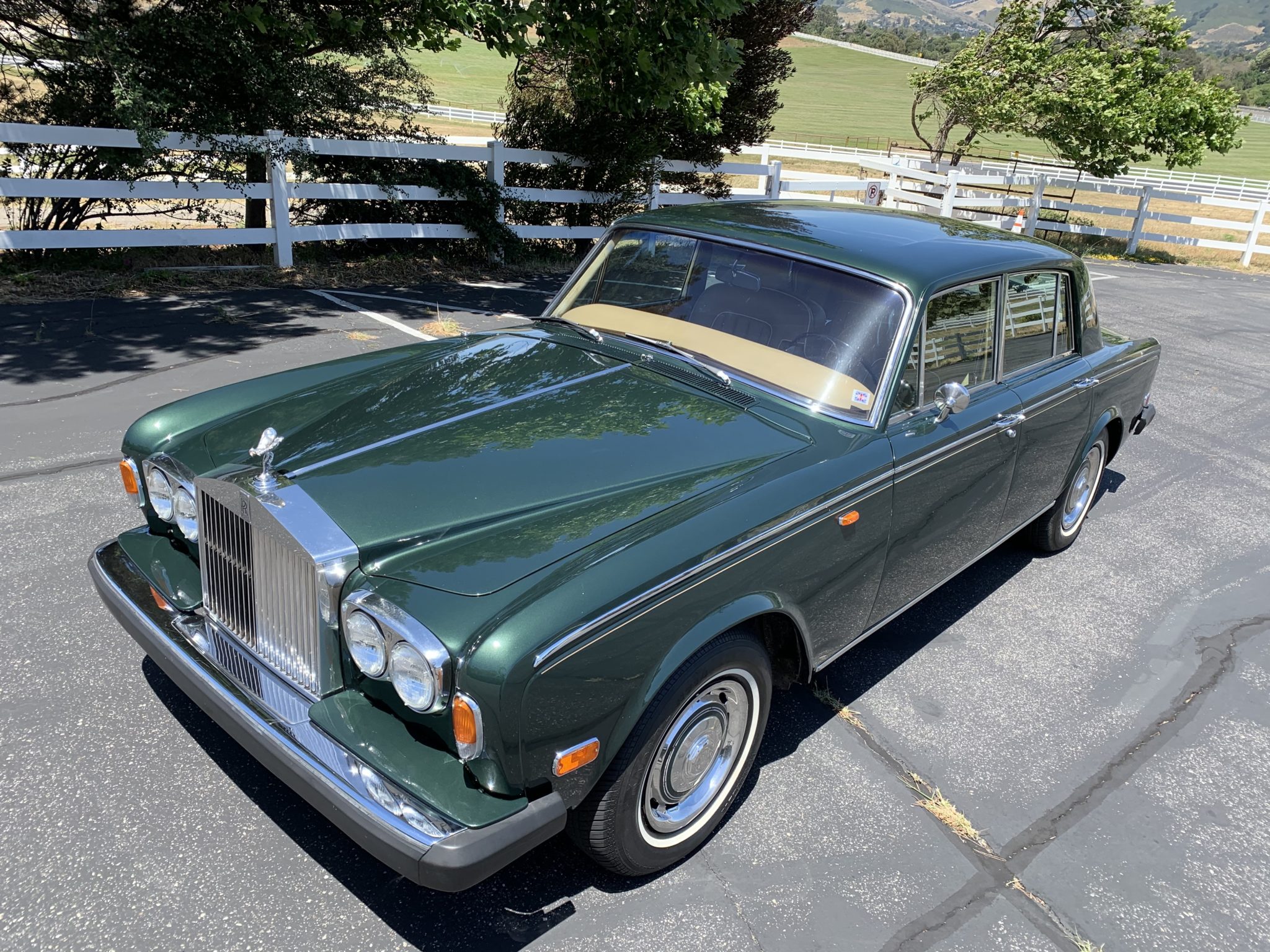 Factory 15″ steel wheels wear polished hub caps and Hankook Radial H714 whitewall tires. The Silver Shadow featured a hydraulic self-leveling suspension system and four-wheel disc brakes. The rear calipers were replaced in preparation for the sale.