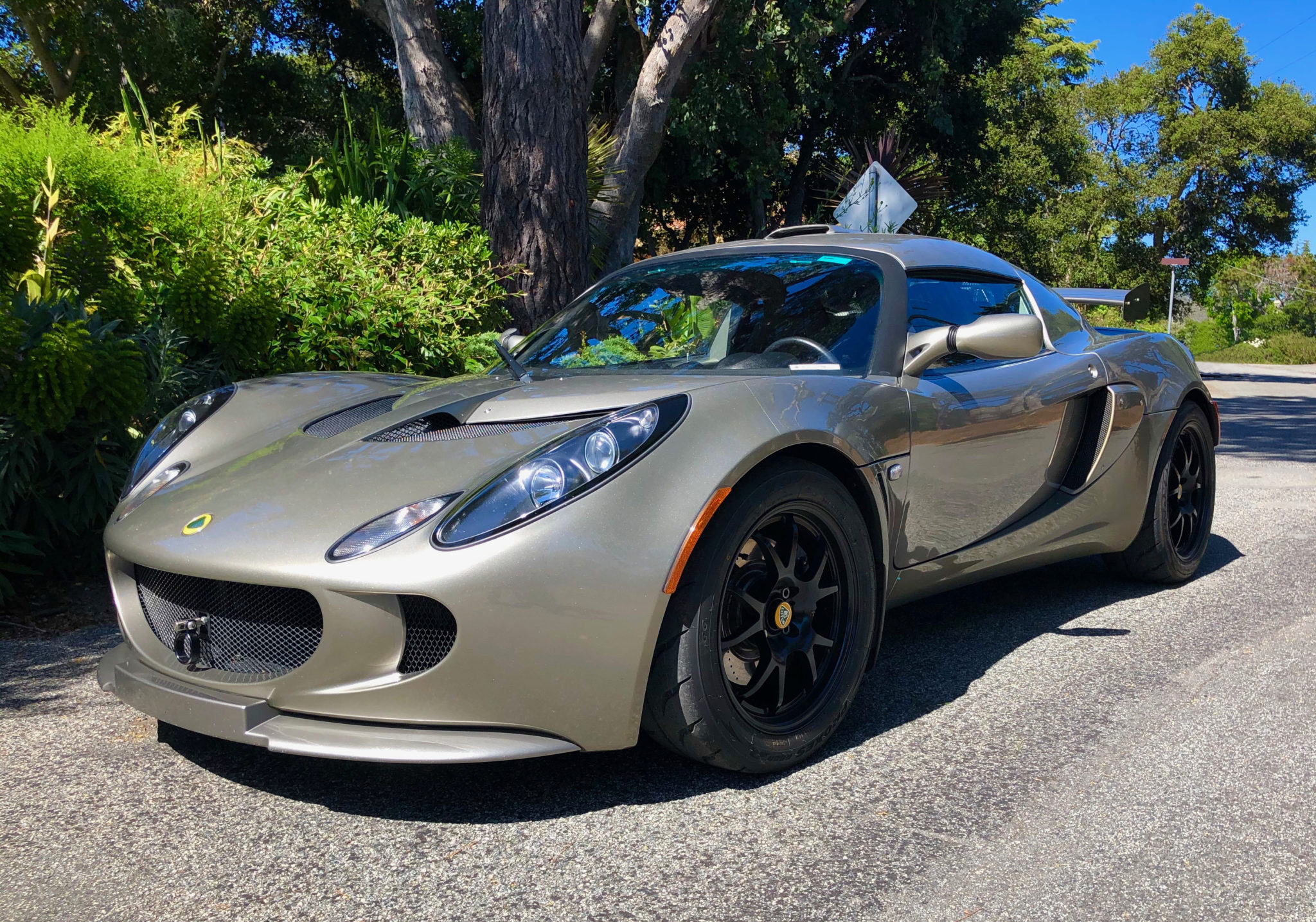 Black-finished InoKinetic RS134 Monolite wheels measure 16×7″ up front and 17×8″ out back. The Toyo Proxes P888R tires show date codes from 2017 and 2019 and were reportedly installed in February 2020. An InoKinetic RTDbrace has been added to reinforce the rear toe links and chassis. Adjustable Bilstein shocks, five-way adjustable sway bars, and a harness bracket are included with the Track package.