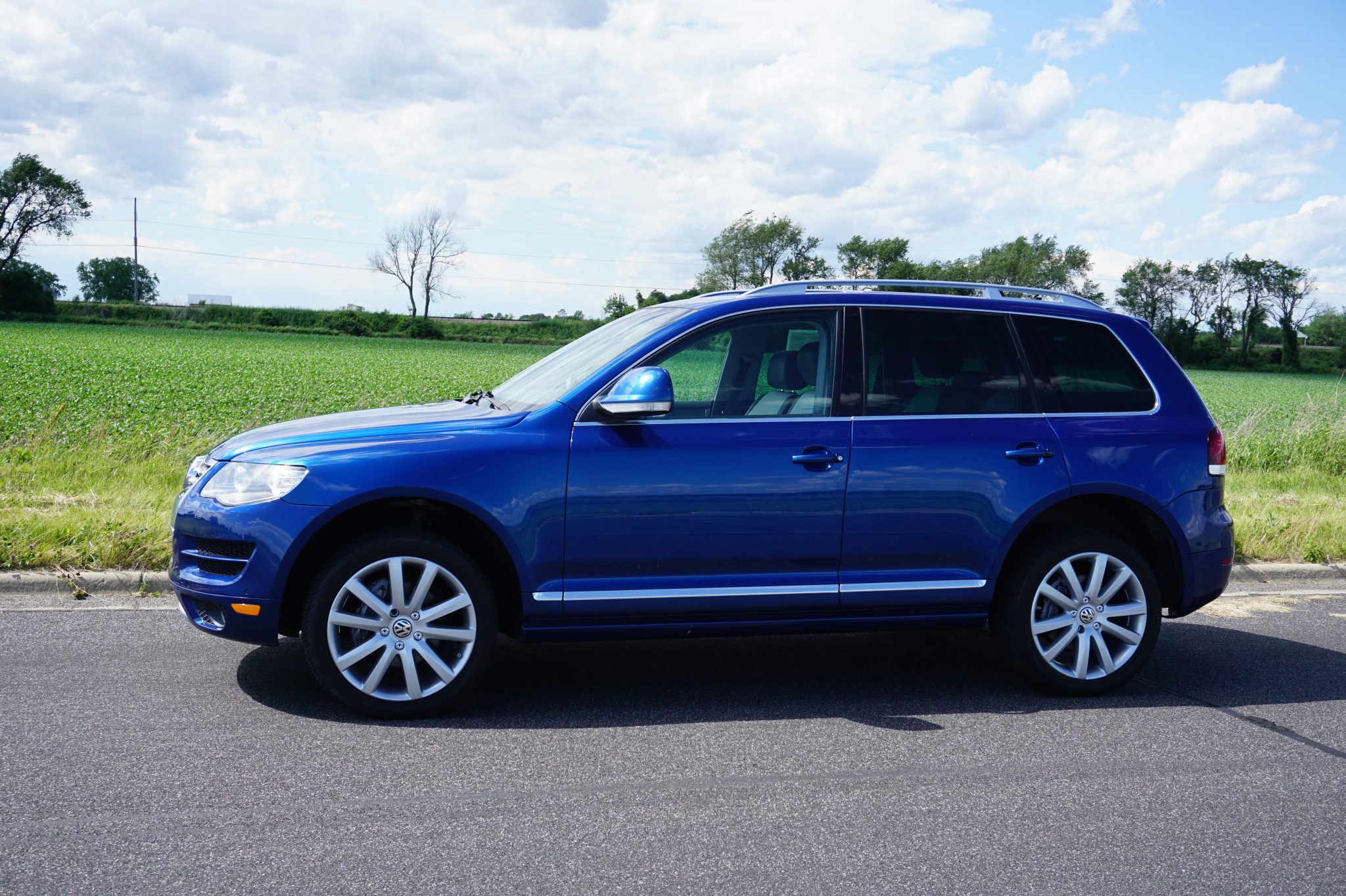 The interior features Anthracite Grey upholstery with Topaz white inserts. The Biscay blue is the only exterior color that got the turned metal trim on the interior, according to the seller. It is optioned with navigation, a back-up camera, Dynaudio, keyless access and start, xenon headlights, and tow hitch.