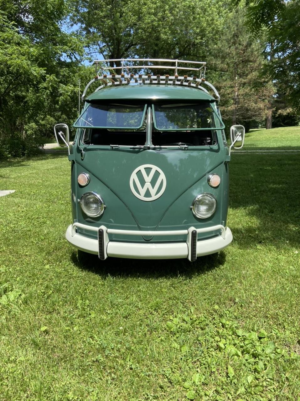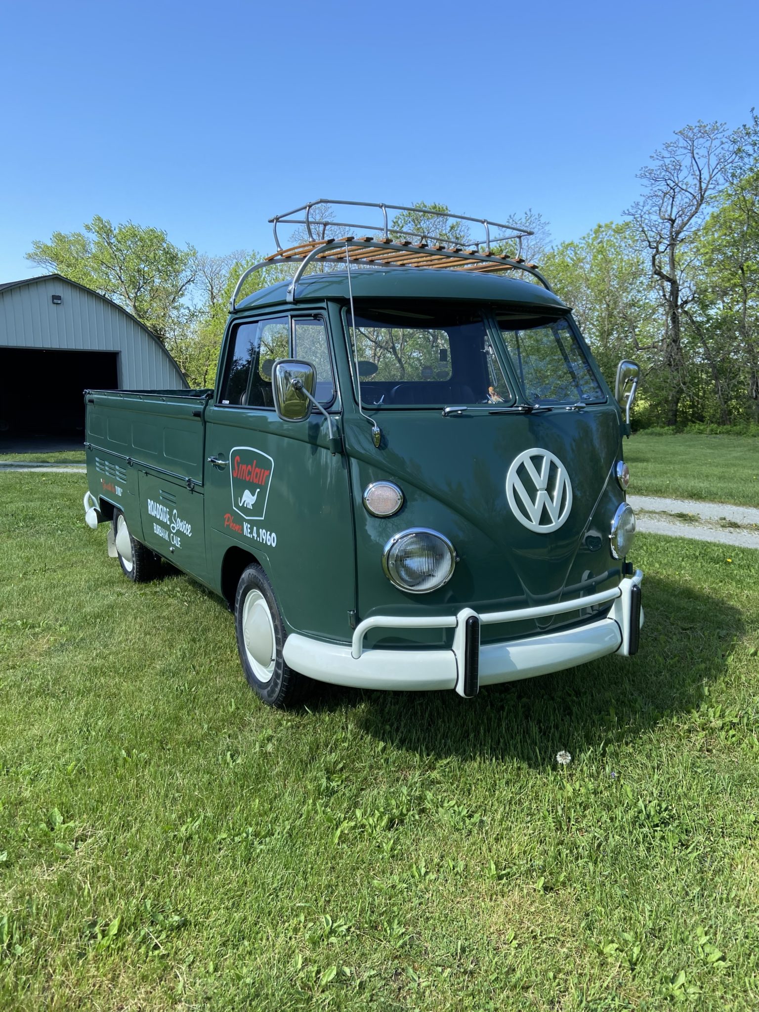 Refurbished white steel wheels with gray VW hubcaps are mounted with 175-R14 Vredestein Comtrac tires. The steering damper and inner left tie rod were replaced in 2013 along with the front wheel bearings and seals. The drum brakes were also serviced with new wheel cylinders, front shoes, and fluid.