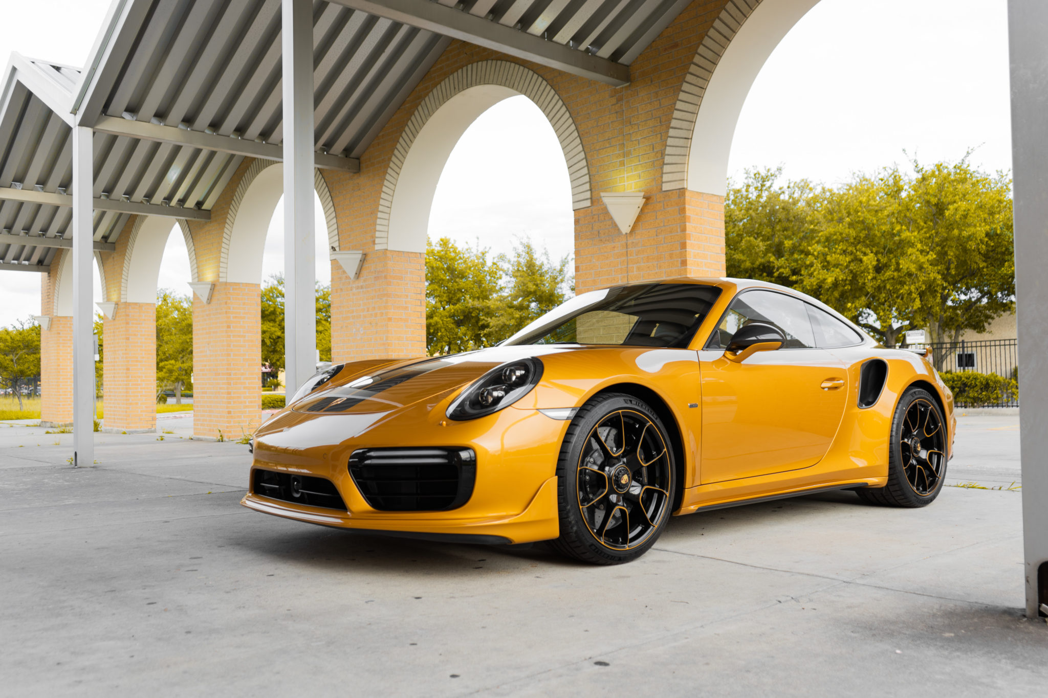 20″ center-lock alloy wheels feature Golden Yellow accents and are mounted with 245/35 front and 305/30 rear Michelin Pilot Sport 4S tires. The Porsche Ceramic Composite Brakes (PCCB) feature black-finished six-piston calipers in the front and four-piston units in the rear, rather than the standard yellow-finished items used on other Porsches.