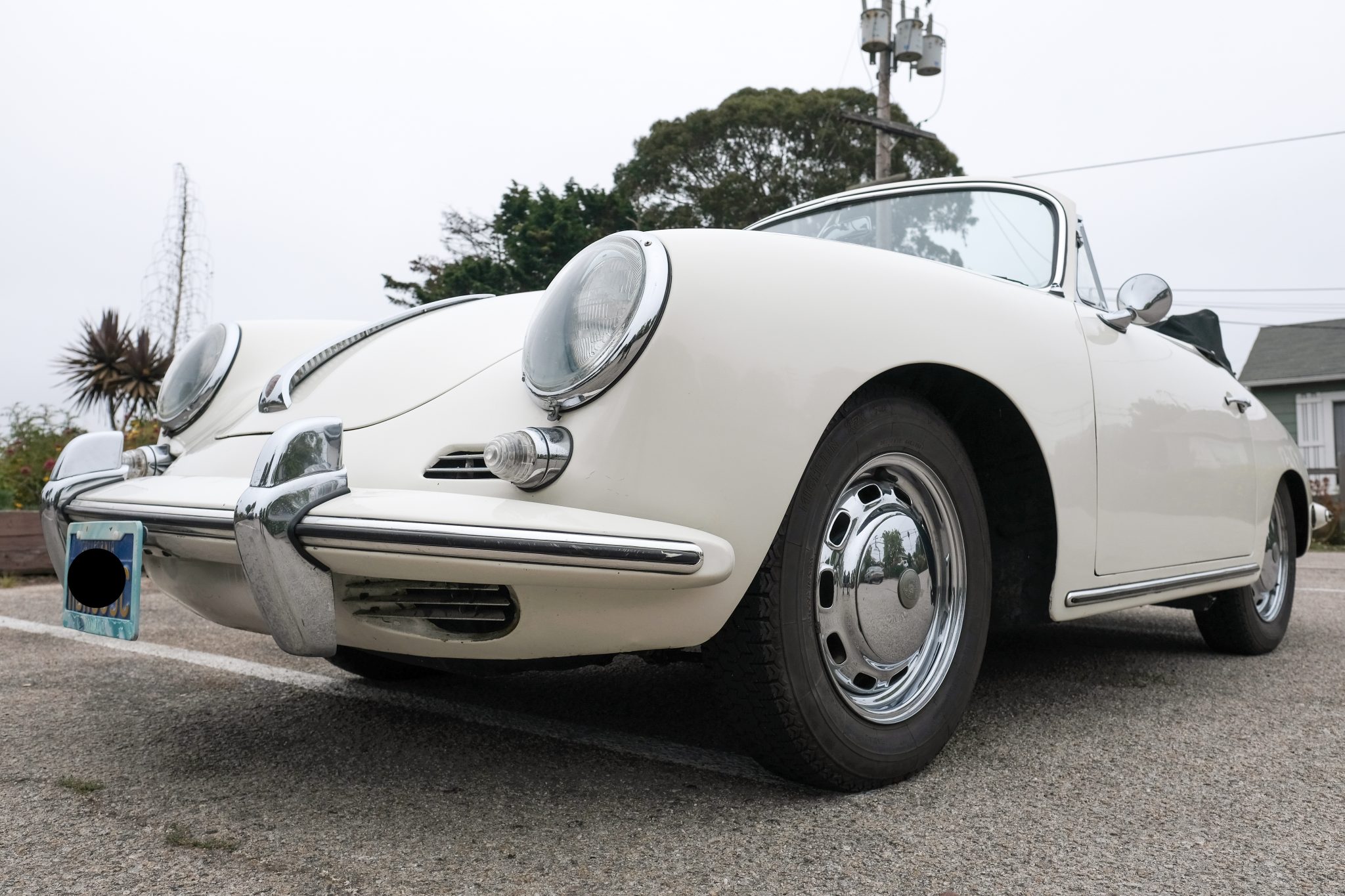 15″ chrome wheels wear chrome Porsche-crest hubcaps and are wrapped in 165-series Michelin radial tires. The seller states that the shock absorbers have been replaced during current ownership and that the front brakes were overhauled in October 2018.