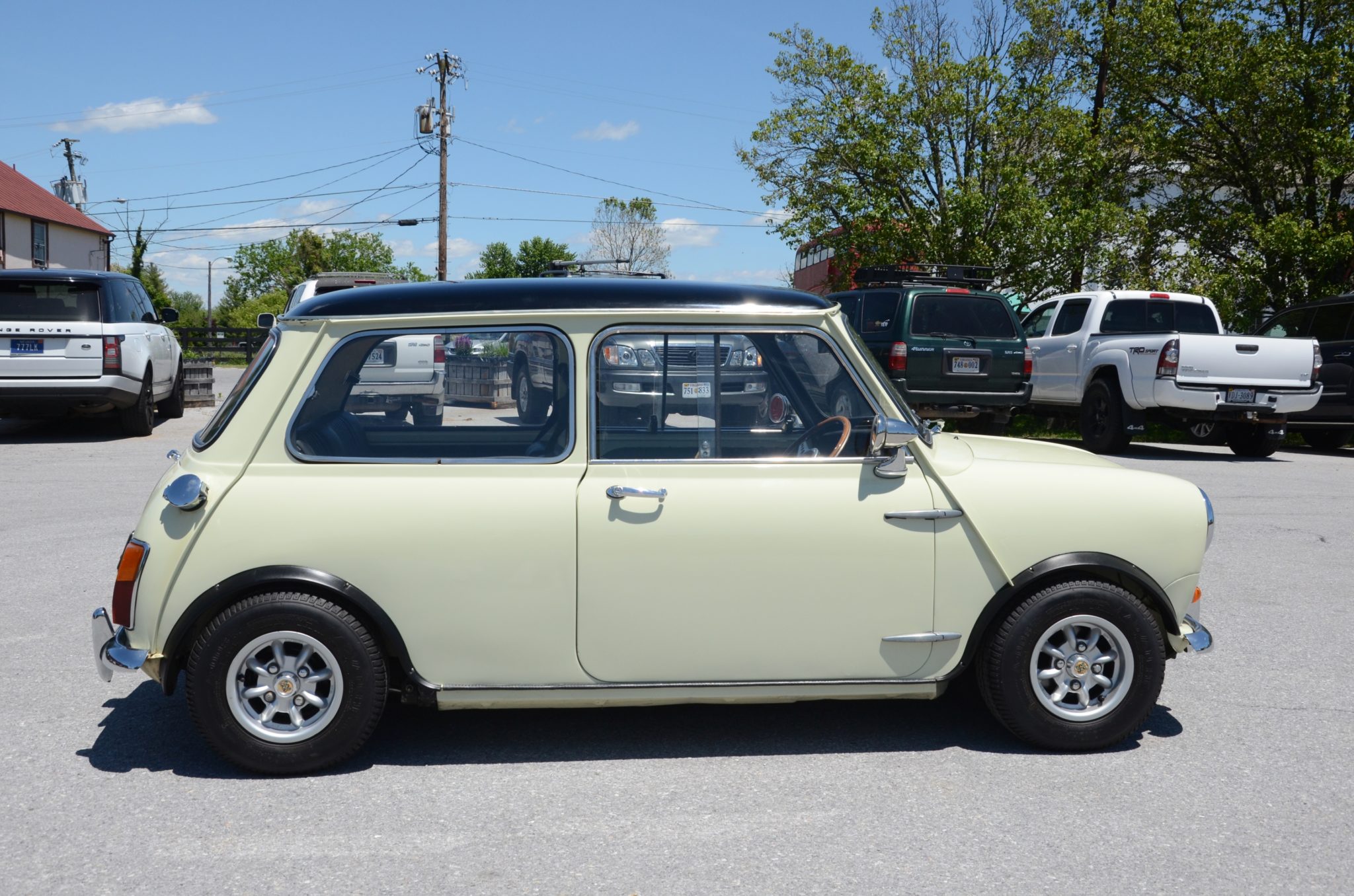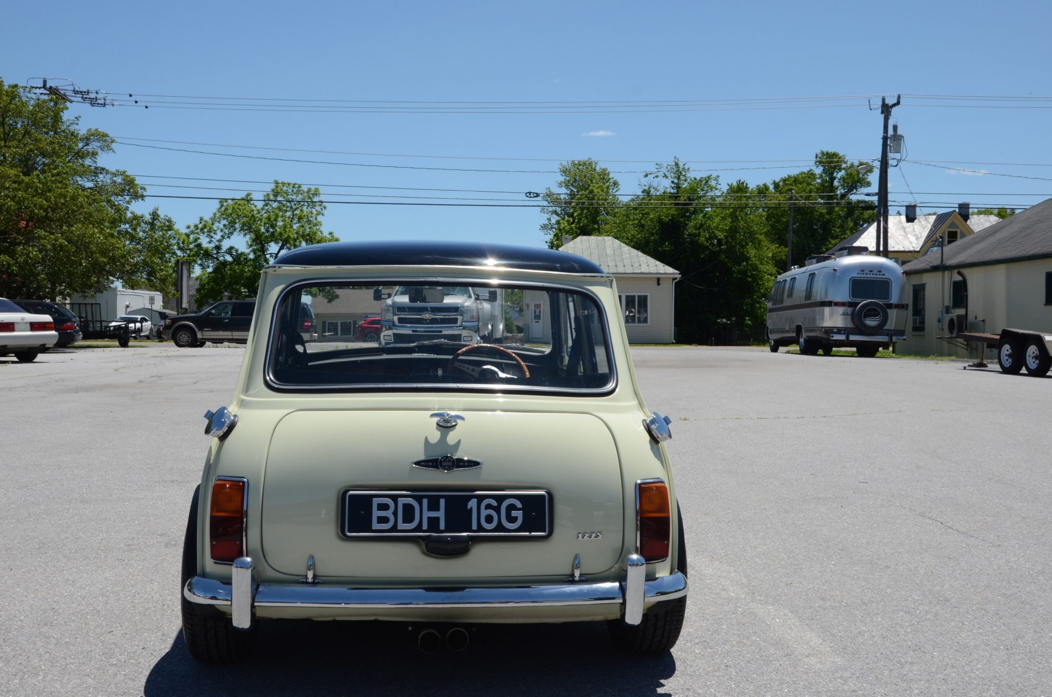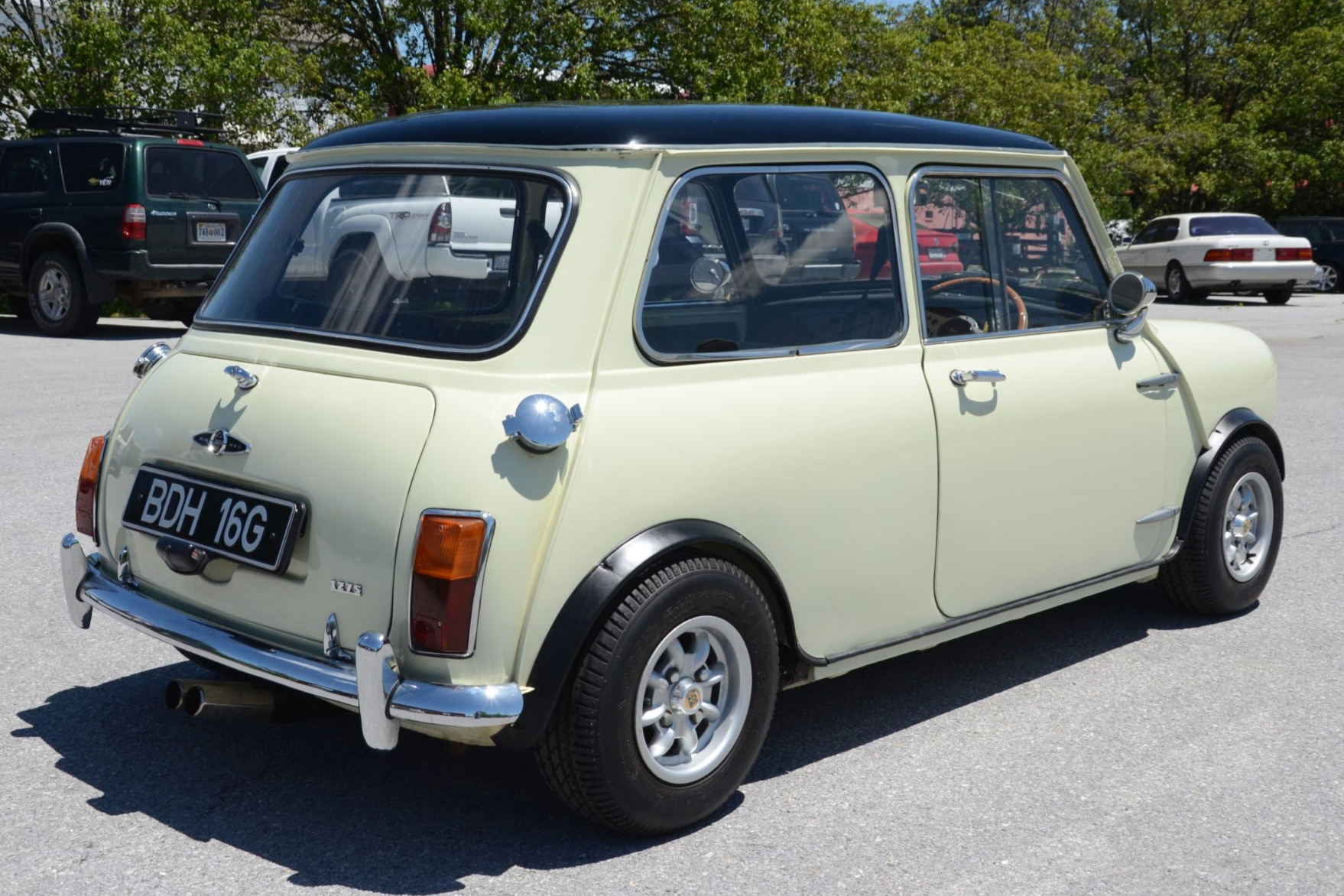 Silver 10″ Minilite wheels wear older Yokohama Advan HF tires sized 185/70. Per the seller, the factory Hydrolastic suspension was replaced with a conventional dry cone setup under previous ownership, and has since been serviced by the seller with a locating kit and new rear bump stops. The rear brakes were updated in 2018 with new shoes, wheel cylinders, and lines.