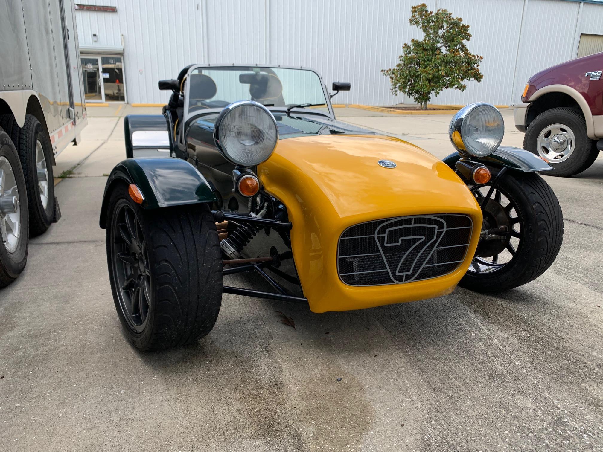 Gunmetal-finished 10-spoke 5×15″ front and 6×15″ rear wheels are wrapped in 195/45 Avon CR500 tires. The car is fitted with 10″ ventilated front brake discs and four-piston calipers, and it also features a double-wishbone front suspension, a de Dion rear suspension, and adjustable front and rear Bilstein shock absorbers. The brake fluid reportedly was bled in June 2020.