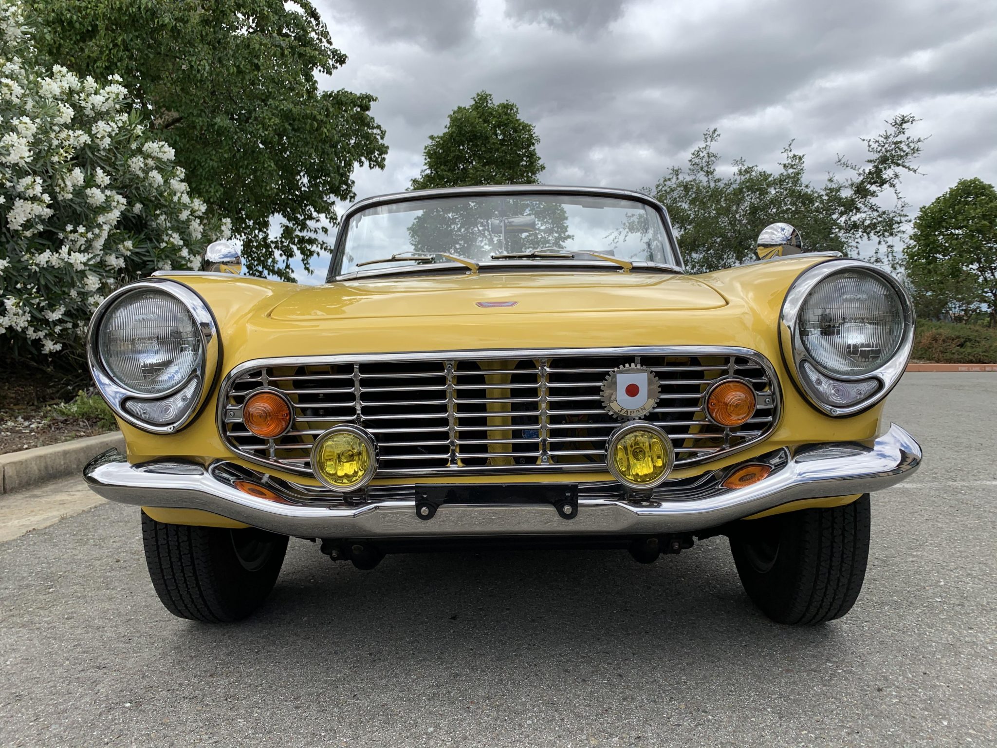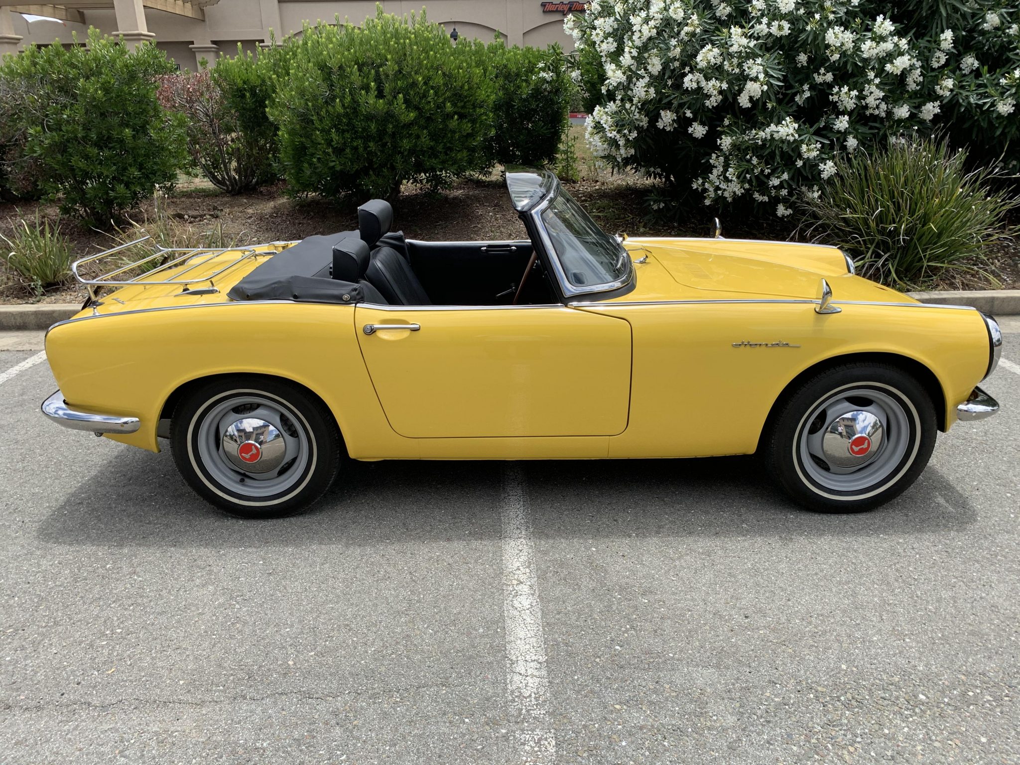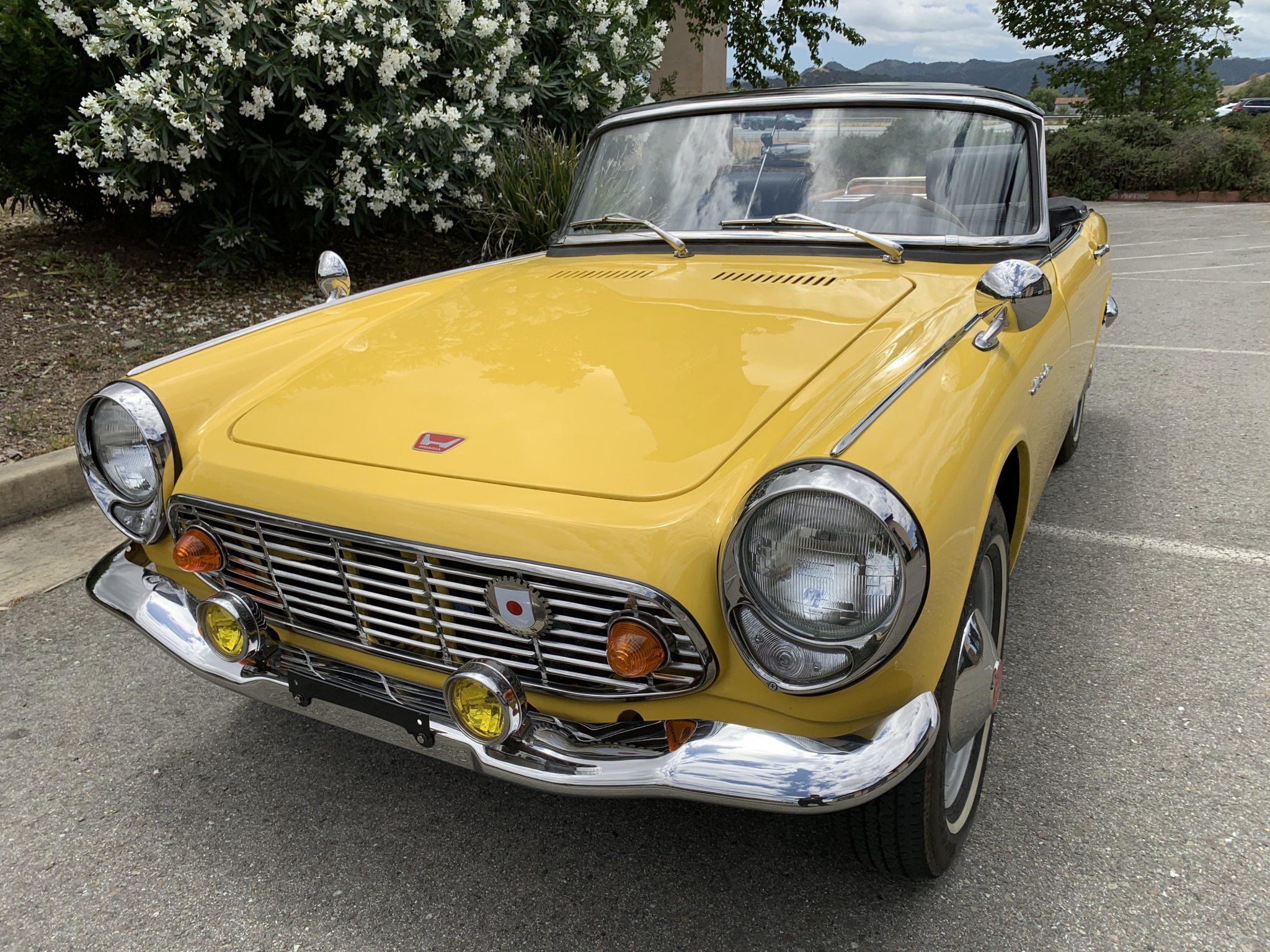 Gray 13″ five-spoke wheels wear chrome hubcaps with colored Honda logos and are mounted with 155/80 Firestone FR440 tires. Koni shocks have been installed along with front disc brakes from a 1968 S800. The removed factory drums will accompany the car, and the DOT5 brake fluid was recently flushed.