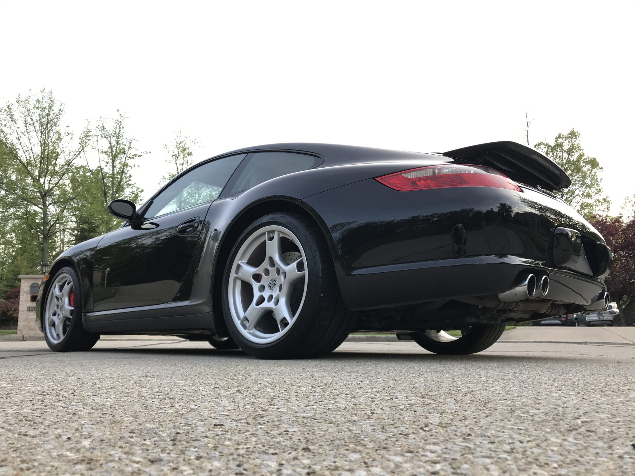Factory 19″ “lobster fork” wheels wear Michelin Pilot Sport tires. Factory equipment includes four-piston brakes with red-painted calipers, Porsche Stability Management (PSM), and Porsche Active Suspension Management (PASM).
