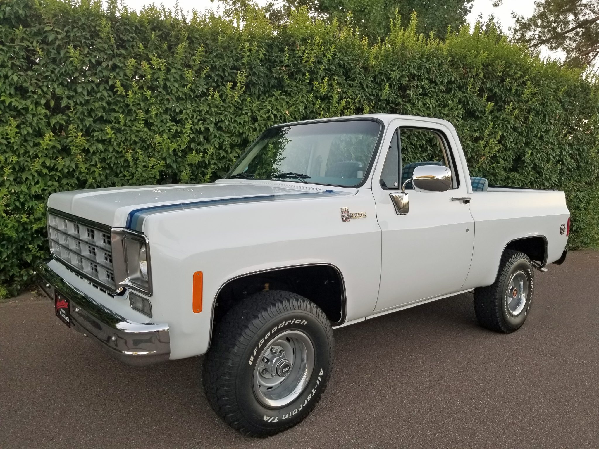 The color-matched removable hardtop is equipped with sliding side windows and has been refinished with a white bedliner coating. The truck features new Monroe shocks and a new steering shock, while the 15″ Rally-style wheel were refinished in argent silver and mounted with used 31×10.5″ BFGoodrich All-Terrain T/A KO tires according to the seller.