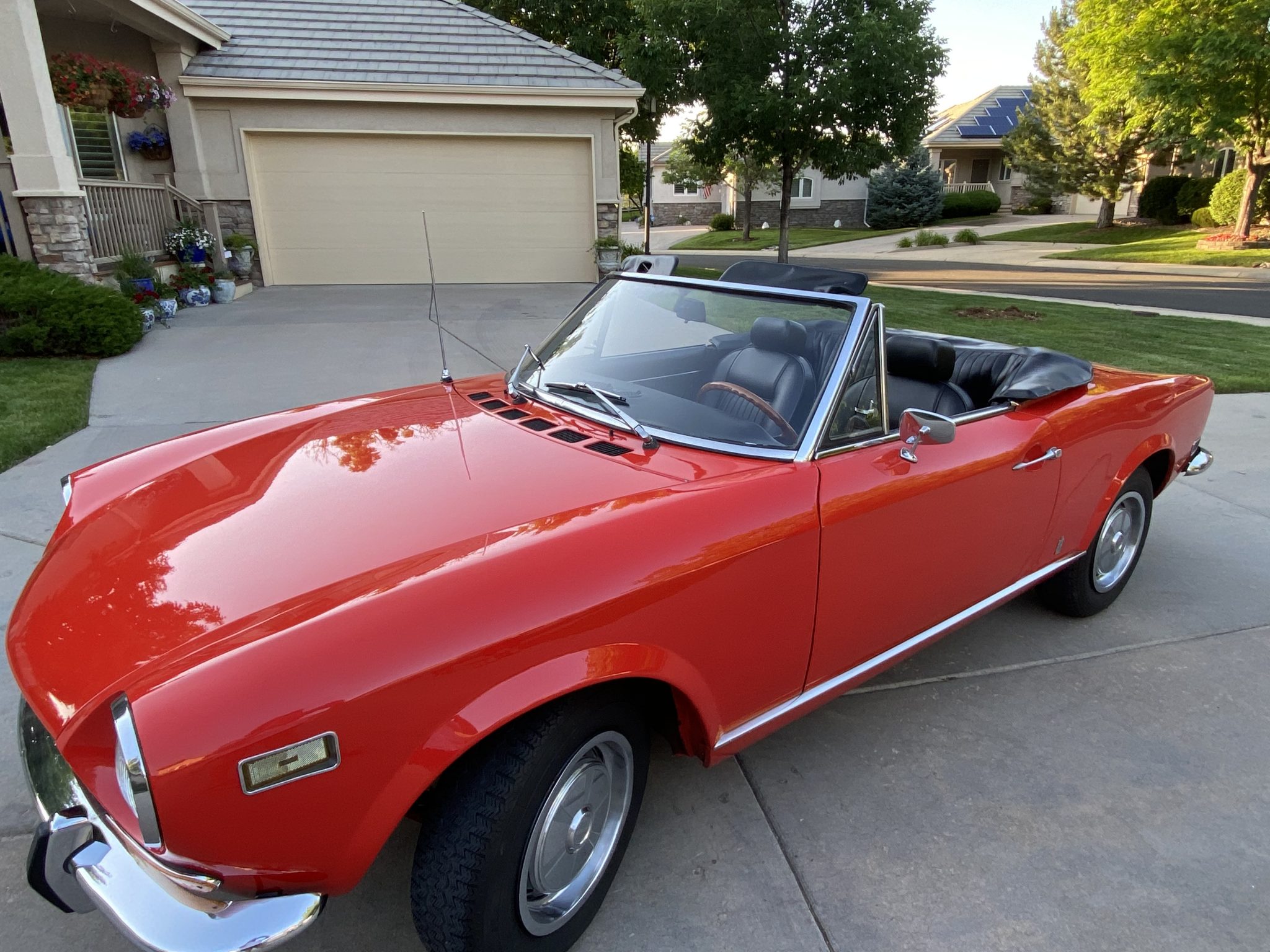 The 13″ steel wheels wear polished hubcaps and 165SR Michelin XZX tires. Five Cromodora wheels with Fiat center caps are included in the sale.