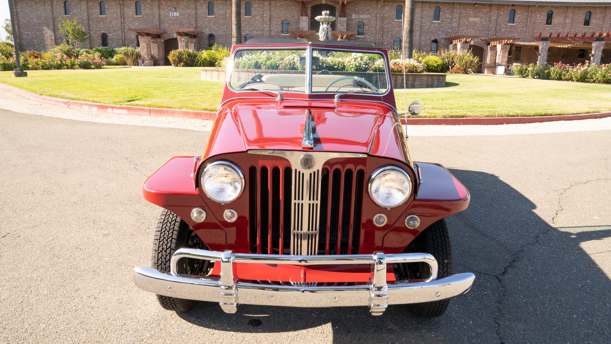 The steel wheels have been powder-coated red and wear chrome hubcaps and beauty rings and Coker Classic wide-whitewall tires. A refresh of the braking system reportedly included rebuilding the master cylinder and machining the drums, as well as replacing the lines, cylinders, shoes, and springs. The leaf springs were also powder-coated, and the suspension is said to have been overhauled with replacement bushings, ball joints, shocks, and U-bolts.