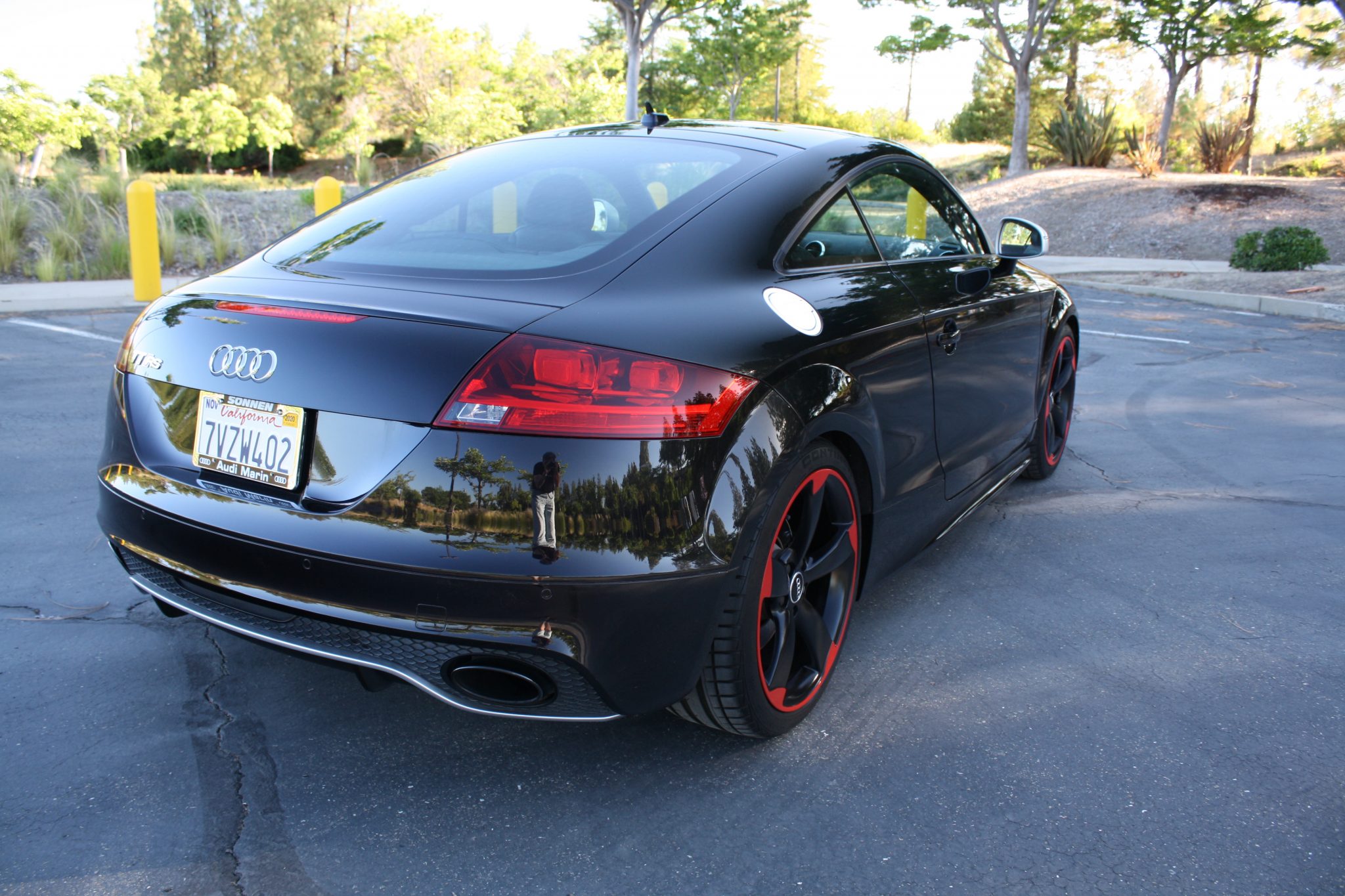 Factory 19″ Rotor-design wheels are finished in black with red accents and wear 255/35 Continental ExtremeContact DW Tuned tires, and a full-sized spare wheel and tire are fitted in the trunk. Black-finished calipers with RS-branding and cross-drilled rotors are equipped up front.