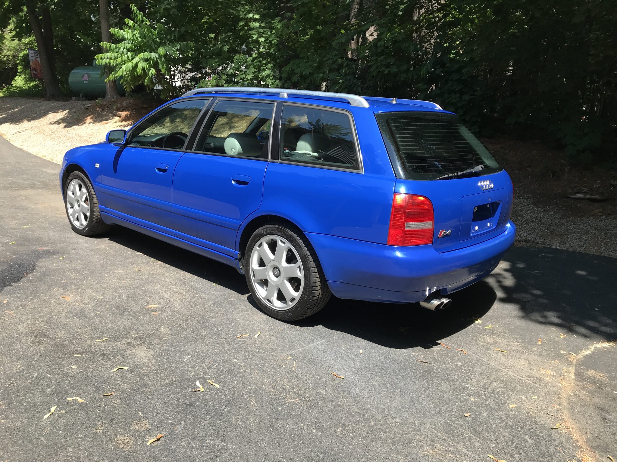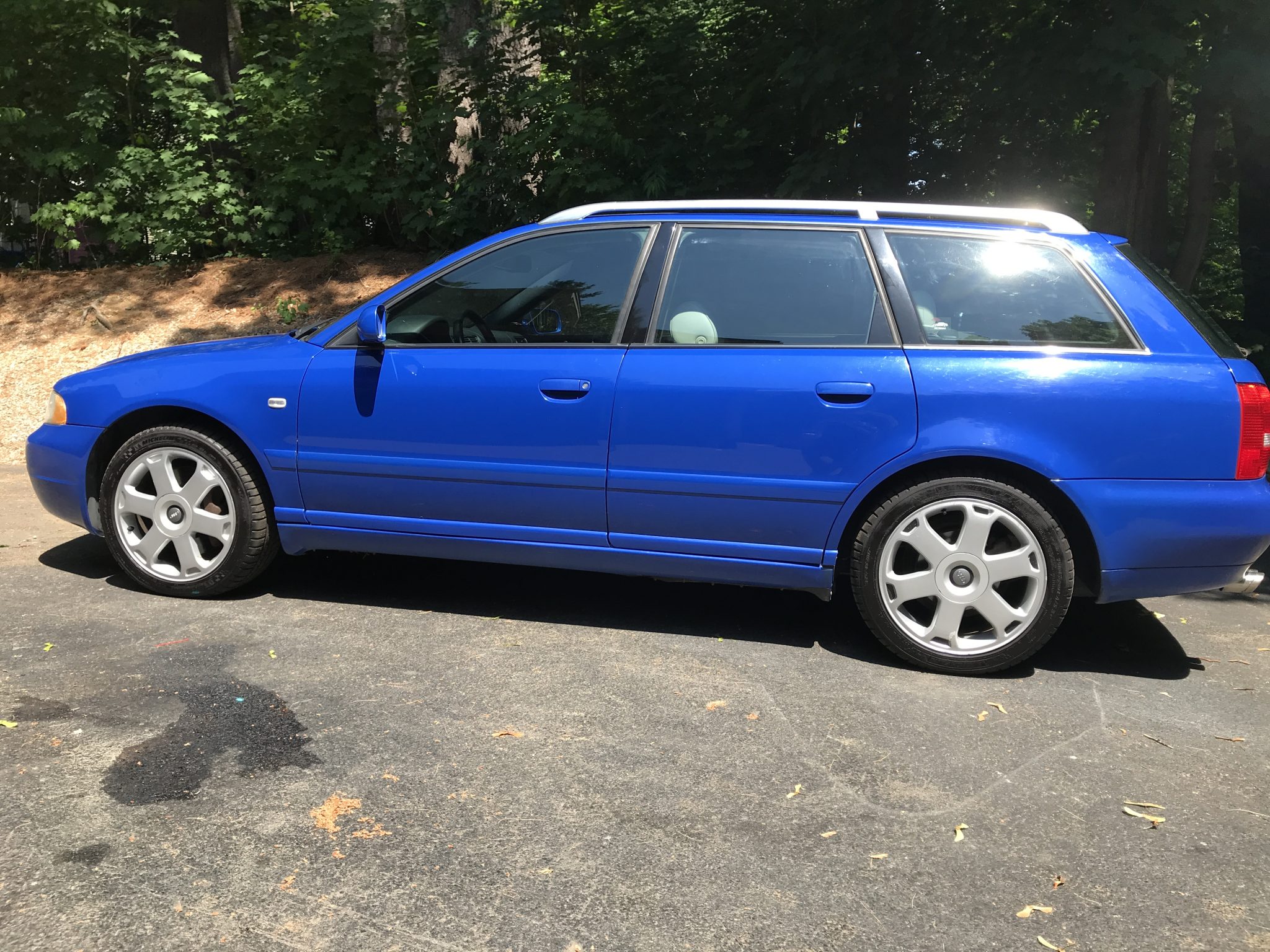 Factory 17″ Avus wheels were recently fitted with 225/45 Michelin Pilot Sport A/S 3+ tires that show 2019 date codes. Two wheels have black-finished spoke coves, and scratches on the wheel faces can be viewed in the gallery. The selling dealer fitted Bilstein shocks and replacement factory-specification springs.