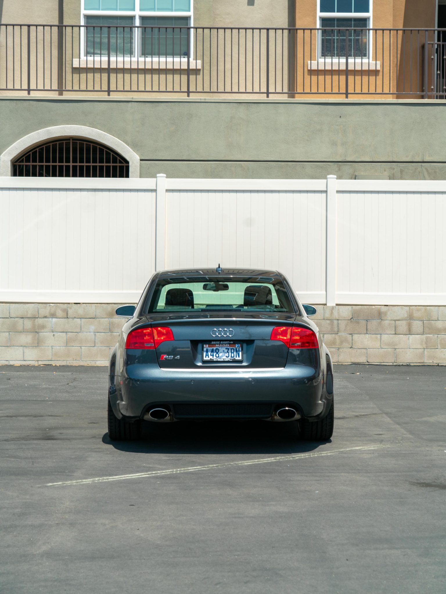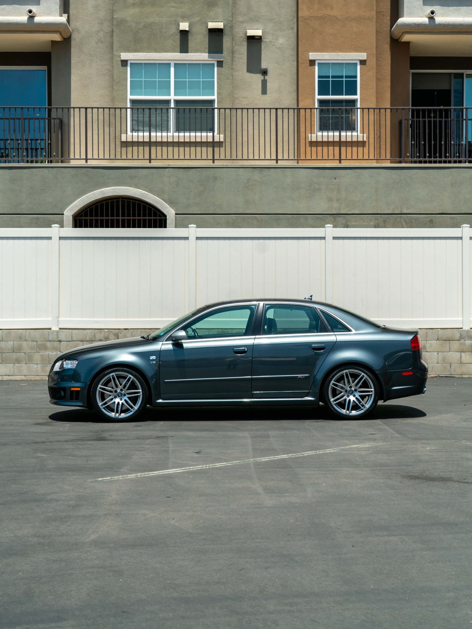 Factory 19″ seven-spoke wheels wear 255/35 Bridgestone Potenza S-04 Pole Position tires. The braking system features multi-piston front calipers and cross-drilled rotors at all four corners, and equipment also includes Dynamic Ride Control. The seller notes curb rash on all four wheels, and detailed photos can be viewed in the gallery.