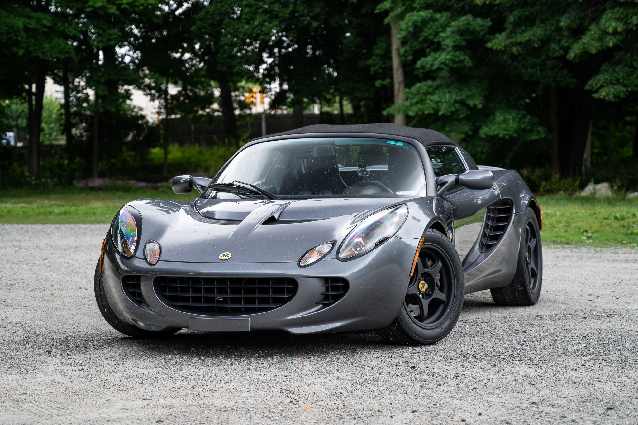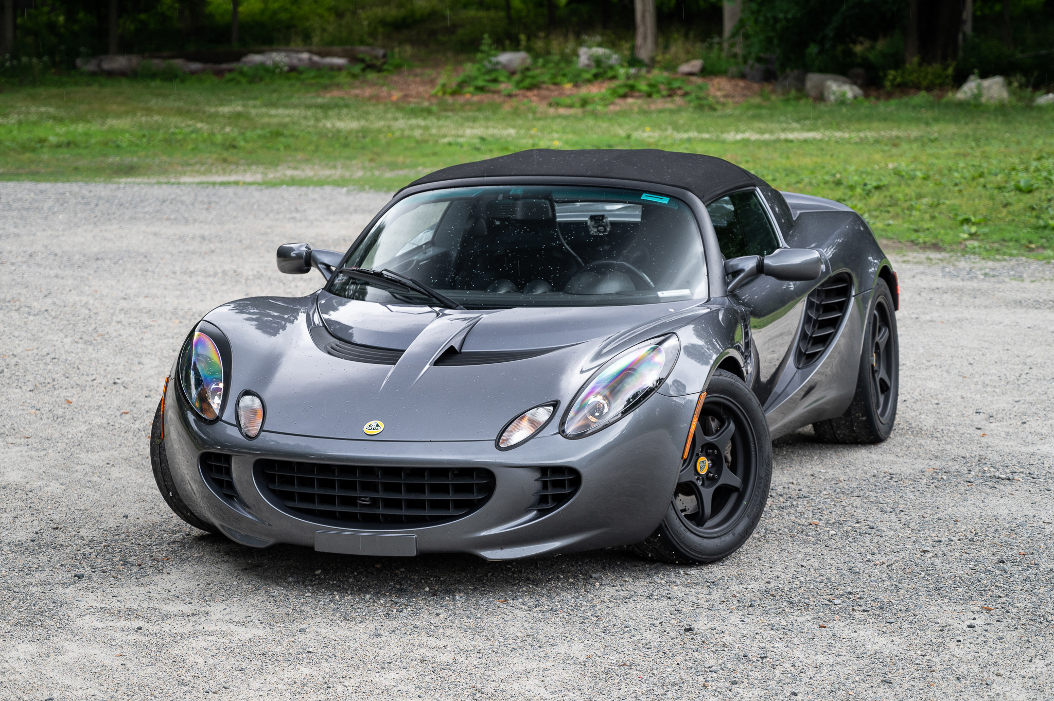 The mounted Ethos wheels measure 15×7″ up front and 17×8″ out back and wear Hankook Ventus Z214 slicks measuring 205/50 and 245/40 respectively. A second set of Ethos wheels with a 16×7″ rear pair are included and are wrapped in Hoosier DOT Radial H2O rain tires measuring 205/50 and 225/50. Braking is handled by four-wheel discs with G-LOC R8 track pads and braided stainless steel brake hoses.