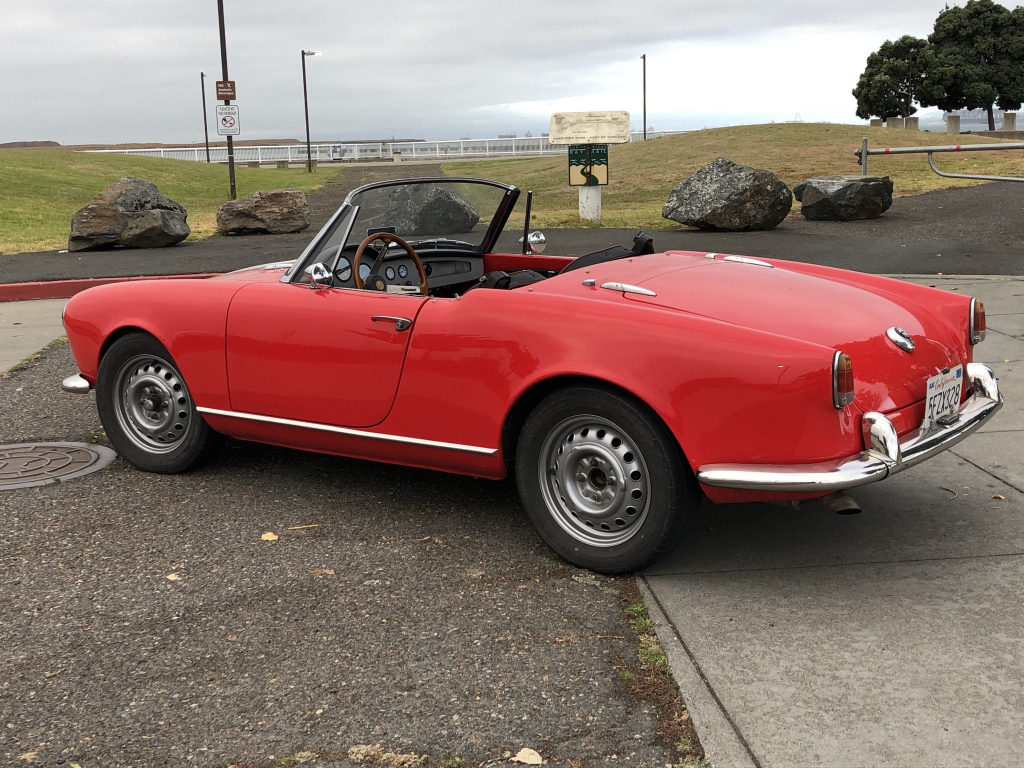 Powder-coated 15″ wheels from a Giulia Ti wear Falken tires. Centerline Alfa springs are equipped at all four corners, while Koni shocks and a Centerline Alfa sway bar have been added up front. Braking is handled by four-wheel discs, along with a Tilton master cylinder with a remote fluid reservoir and proportioning valve. The black soft top is said to have been replaced in 2019 and is shown in its raised position in the image gallery below. The seller notes that the top does not fit tightly to the windshield frame and states that the reverse lights are disconnected.
