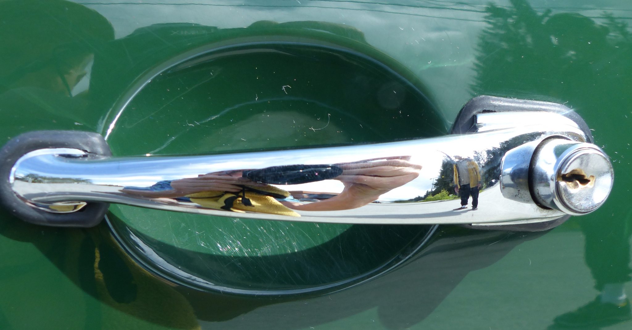 The seller sourced 15×5.5″ chrome steel wheels from Stoddard Porsche in 2020 and notes that the removed chrome wheels are included in the sale but are in poor condition. The mounted Michelin X Radial tires measure 185/65 and show 2010 date codes. Braking is handled by four-wheel discs, the front pair of which were rebuilt with new stainless steel pistons in 2012.
