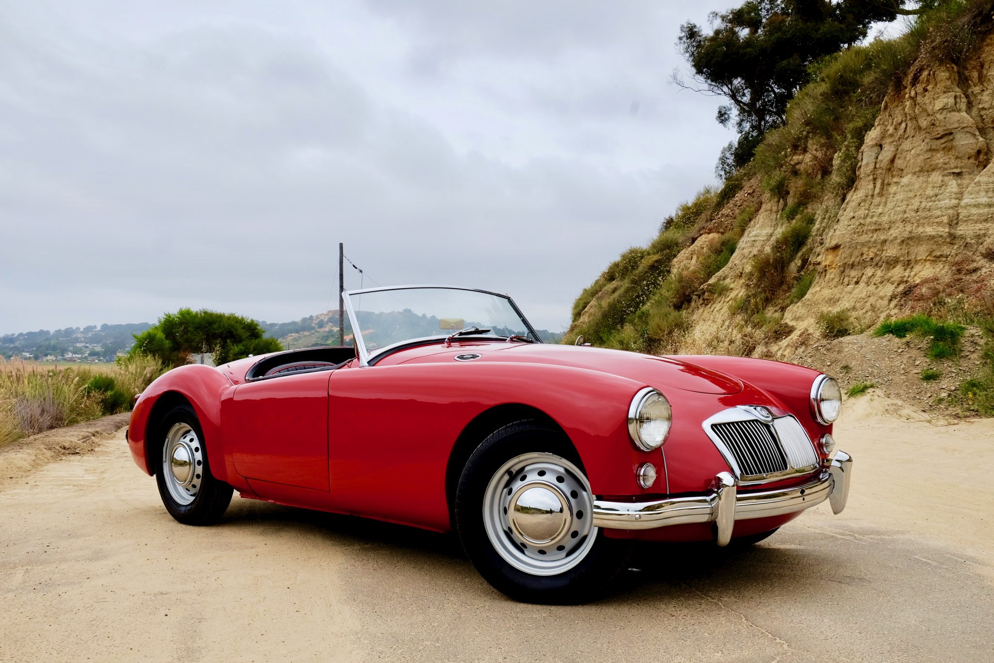 Silver-painted 15″ steel wheels are wrapped in 165/80 Classic All-Season tires. The black convertible top is shown raised in the gallery, which includes images of tears in the top’s vinyl material. The seller notes indicates that a replacement black tonneau cover is included but side curtains are not.