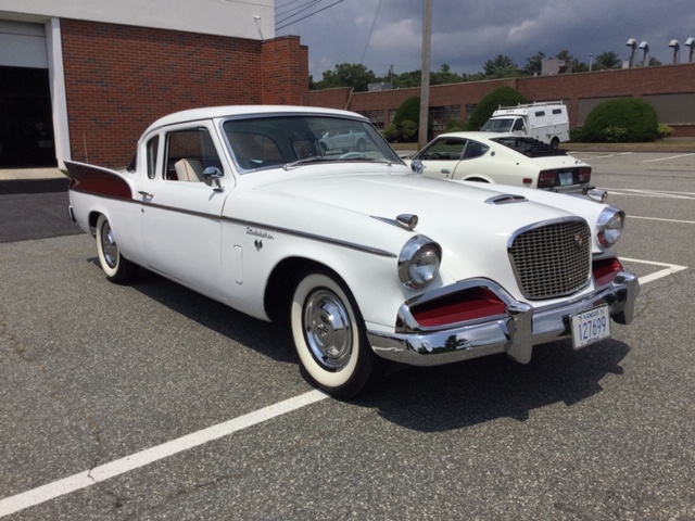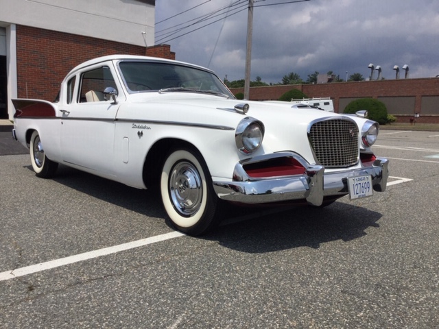 Factory steel wheels wear polished covers and are wrapped in Coker whitewall tires. Additional equipment includes chrome-accented side mirrors, trim, and bumpers with overriders. The seller reportedly adjusted the front brakes, replaced the rear wheel cylinders and shoes, and resurfaced the rear drums.