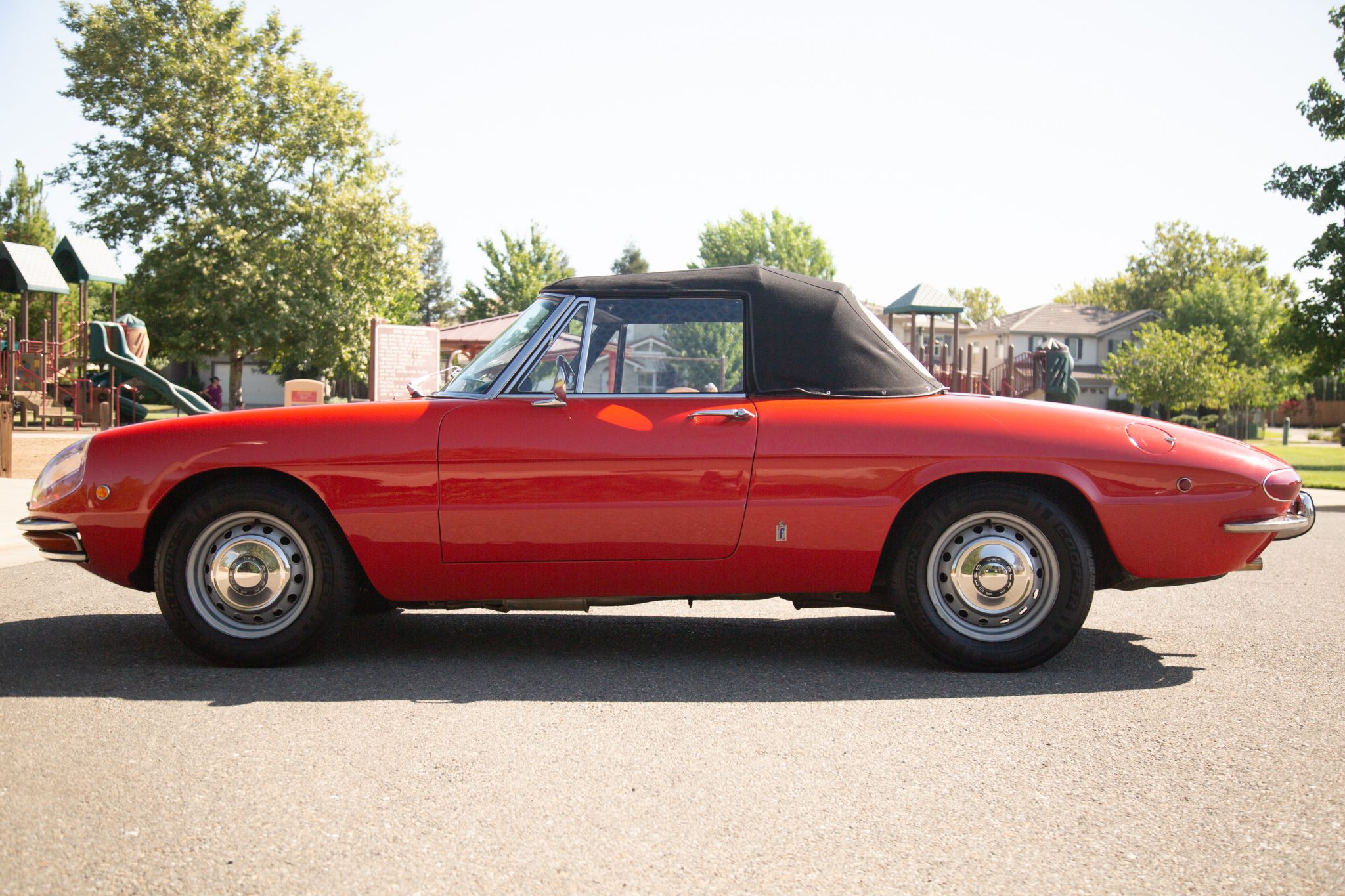 14″ steel wheels feature polished Alfa Romeo hubcaps and wear 185/70 Cooper Evolution Tour tires showing 2018 date codes. The seller reports that service since 2015 includes rebuilding the brakes and replacing the suspension bushings.