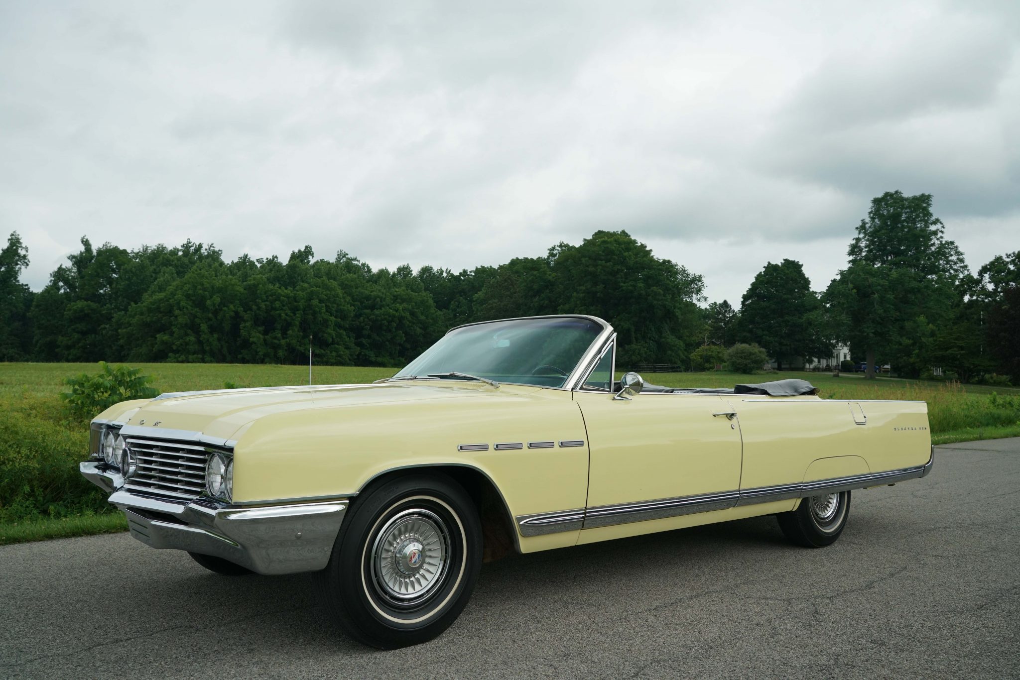 Steel wheels with factory polished Buick wheel covers are fitted with older whitewall radial tires. Service during current ownership is said to include the replacement of the front brake hoses, drum adjustments, and a brake line flush. Power steering and power-assisted brakes were factory equipment.