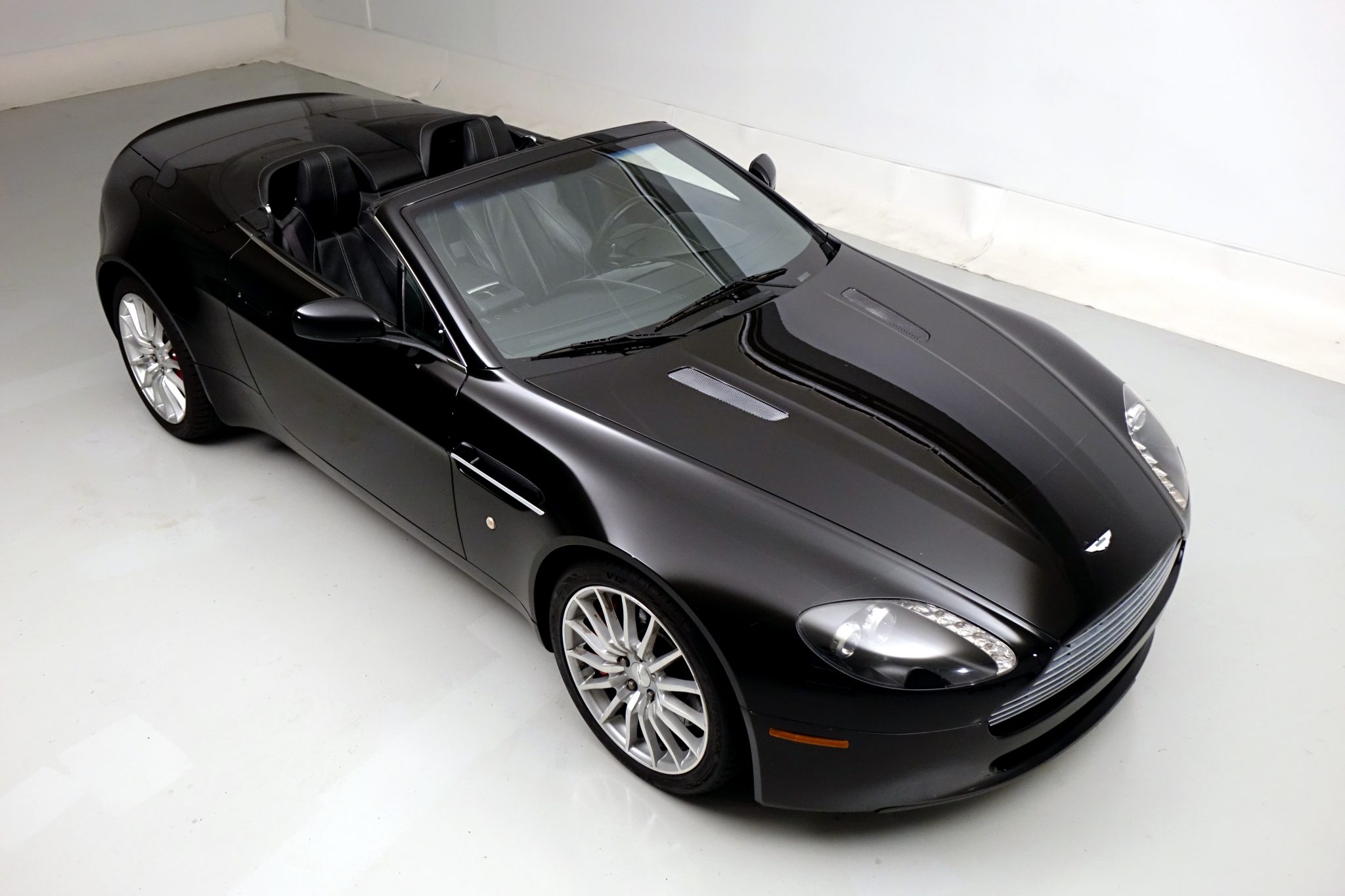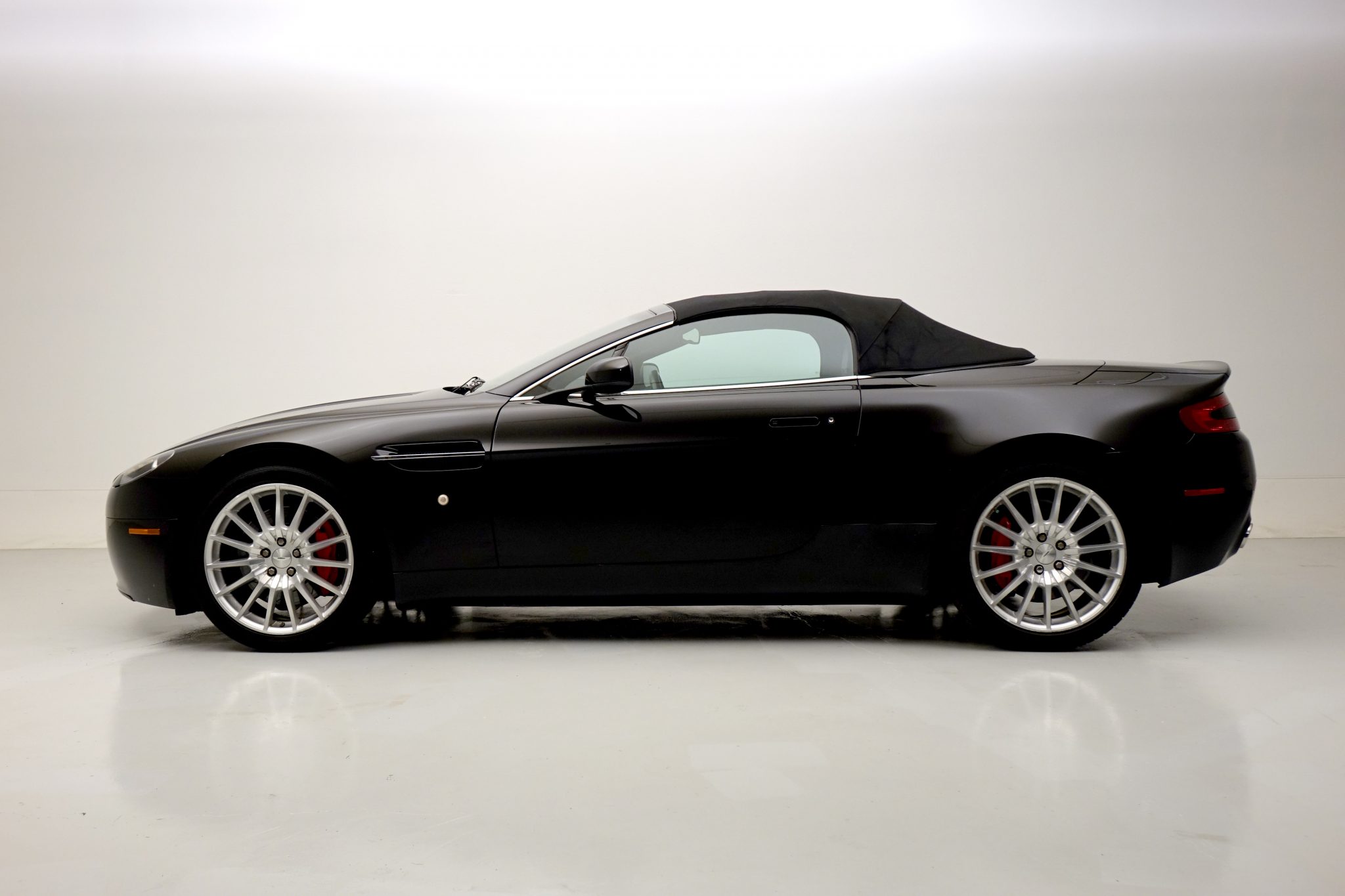 Staggered-width 19″ wheels are mounted with a set of 245/40 Hankook Ventus V12 Evo tires up front and 275/35 Dunlop SP Sport tires out back. Aston Martin-branded brake calipers finished in red clamp ventilated and slotted rotors all around.