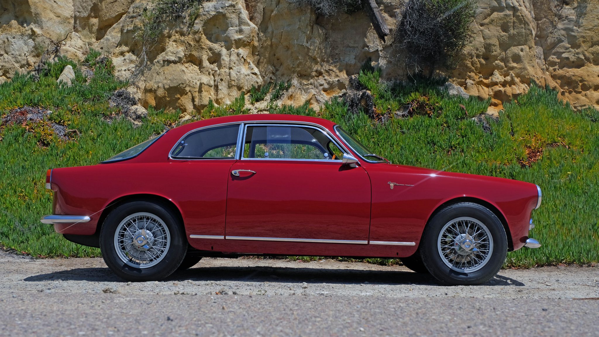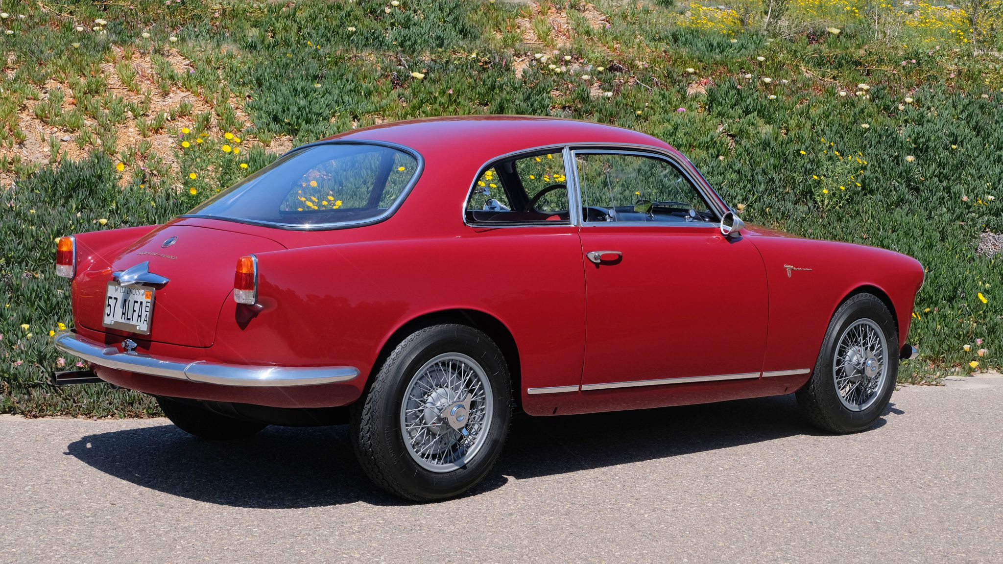 This example, body number 77596, was disassembled and stripped to bare metal during the 2010s restoration. Bodywork was carried out in a number of locations before a repaint was performed in the factory red color. Photos of body stampings can be seen in the gallery below, along with images of the exterior trim, badges, and lenses.