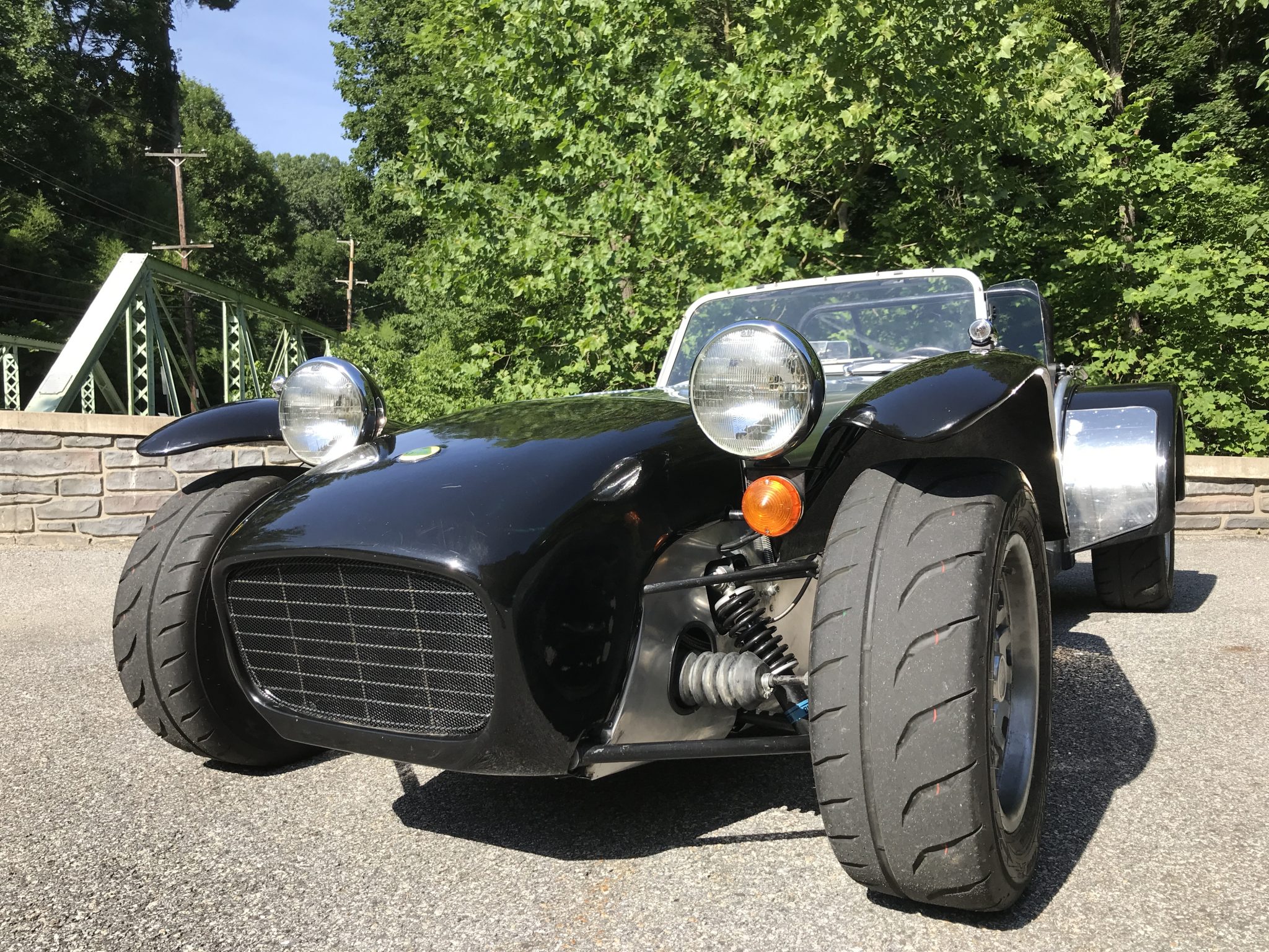 13″ alloy wheels are wrapped in Toyo Proxes R888R tires that were installed in 2019. The chassis is fitted with coilover suspension and Girling disc brakes up front, and a live rear axle with drums out back. Service performed during current ownership includes replacement suspension bushings, Bilstein dampers on all four corners, a handbrake cable, and brake hoses.