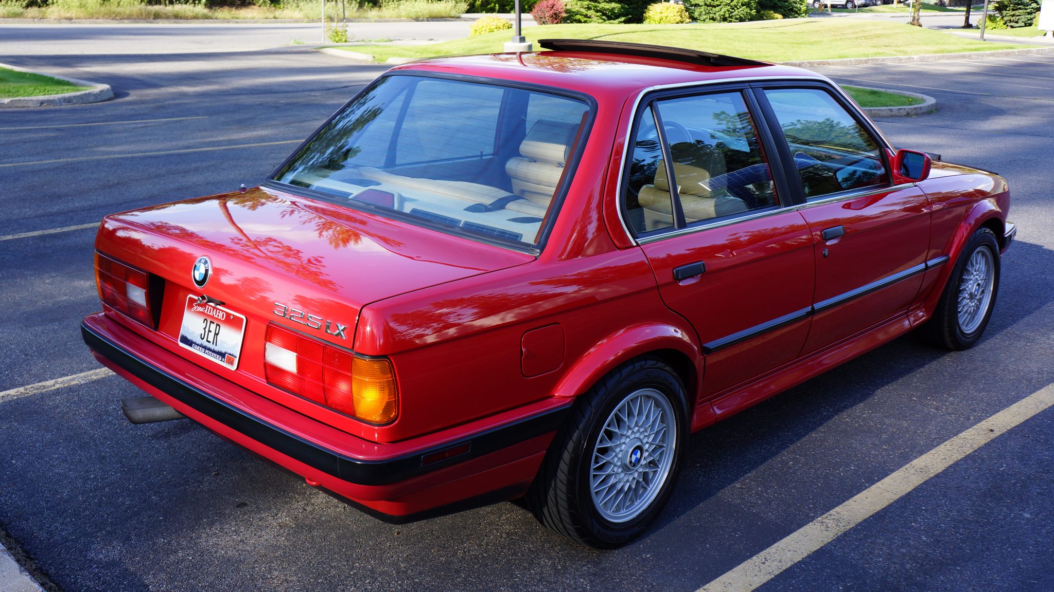 Factory 15″ basketweave wheels are wrapped in 205/55 Yokohama S.drive tires, and a full-size spare tire is mounted in the trunk. The seller modified the suspension with Bilstein shocks and an H&R springs, and an alignment was performed within the last year.