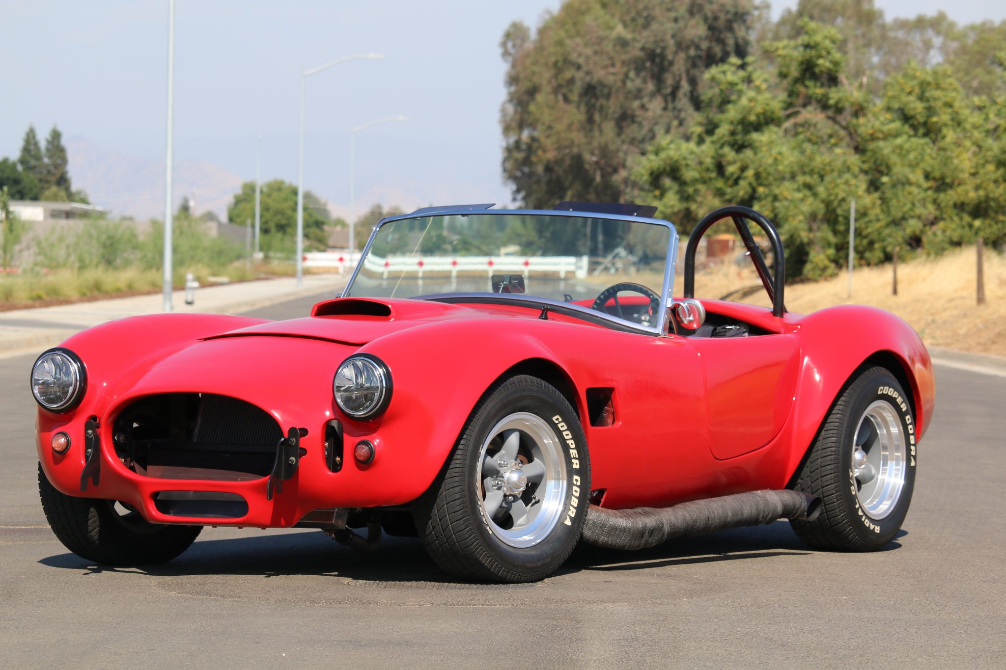 Staggered-width 15″ American Racing Torq Thrust D wheels are wrapped in Cooper Cobra radial tires measuring 235/60 in front and 245/60 at the rear. Disc brakes are fitted at all four corners, and the car is equipped with Mustang II front and rear suspension components.