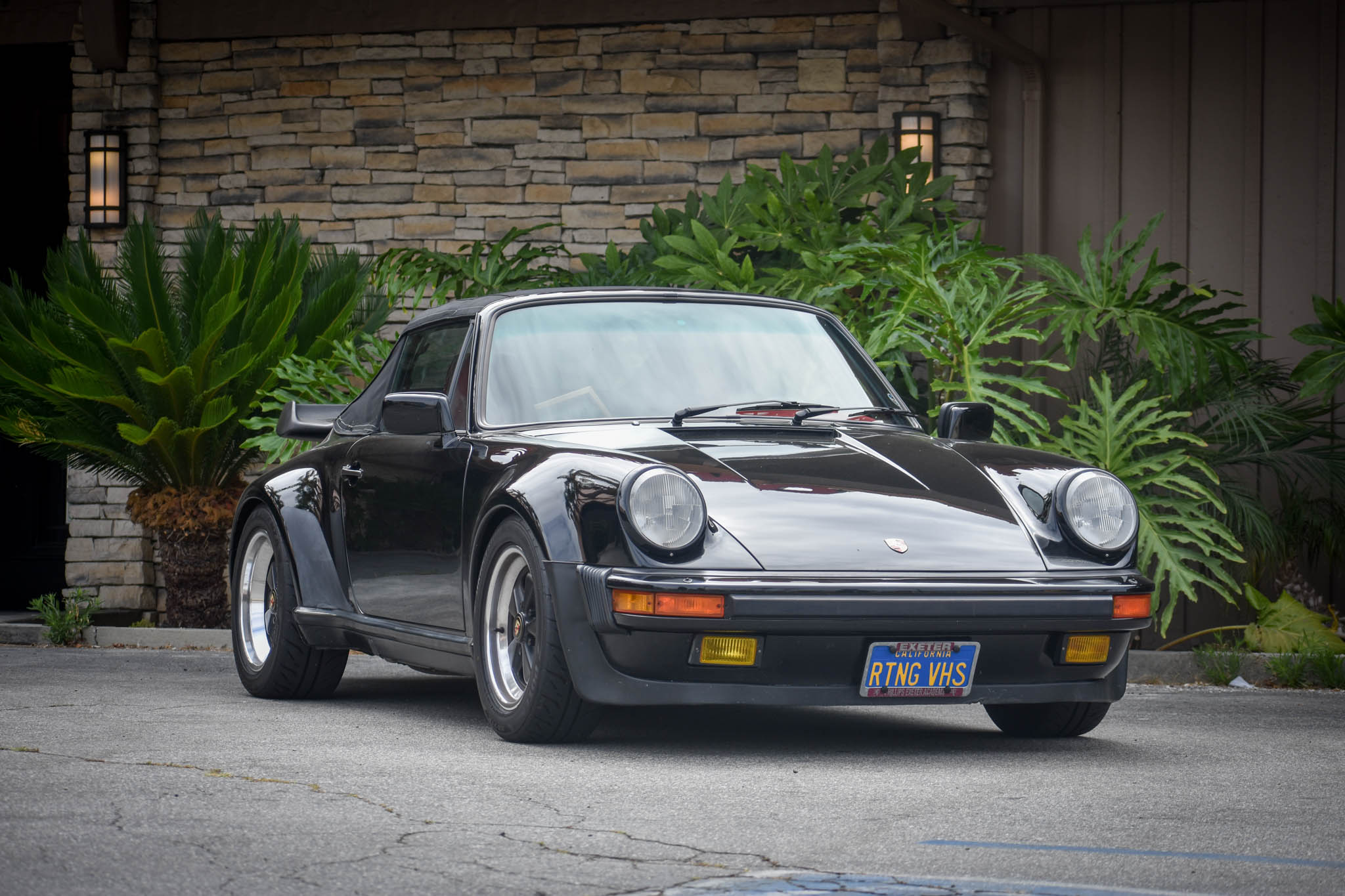 Staggered-width 16″ Fuchs wheels are mounted with Bridgestone Potenza RE-71R tires, and new wheel studs, lug nuts, and wheel spacers were fitted in 2018. New Bilstein dampers were installed in 2017, and in 2018 the car also received a front strut tower bar, spring plate bushings, a four-wheel alignment, and corner balancing. The convertible top received a new latch, hardware, lower seals, and an adjustment in September 2017.