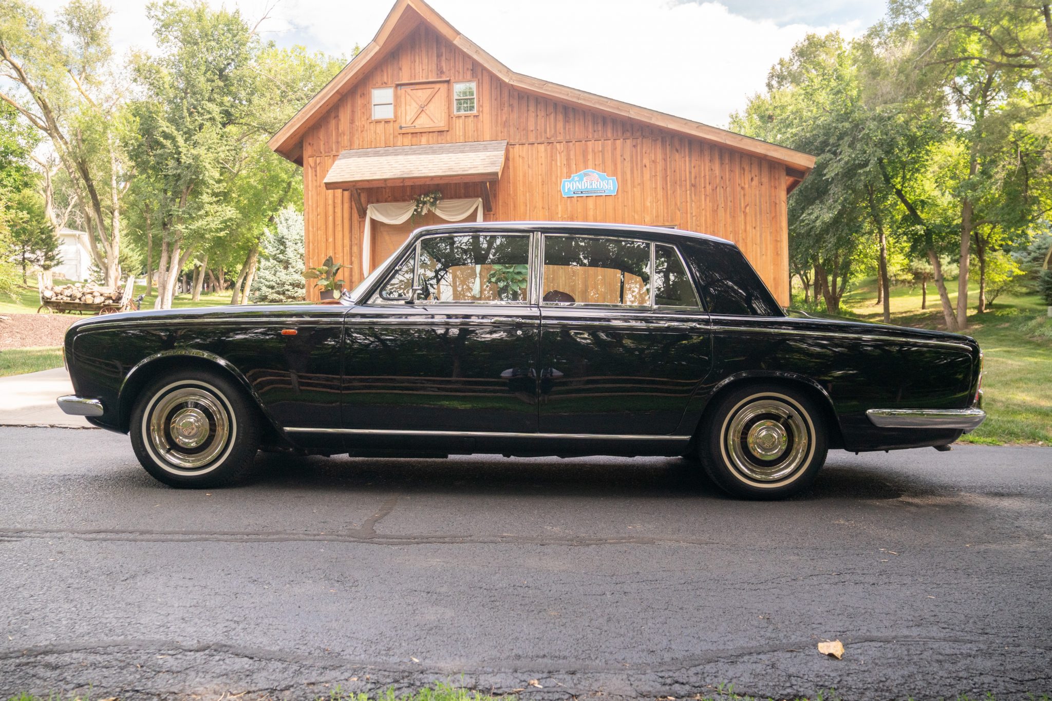 Steel 15″ wheels wear Rolls-Royce–stamped covers and are mounted with 205/75 Firestone FR380 whitewall tires. A self-leveling hydropneumatic suspension system was licensed from Citroën, and disc brakes came standard.