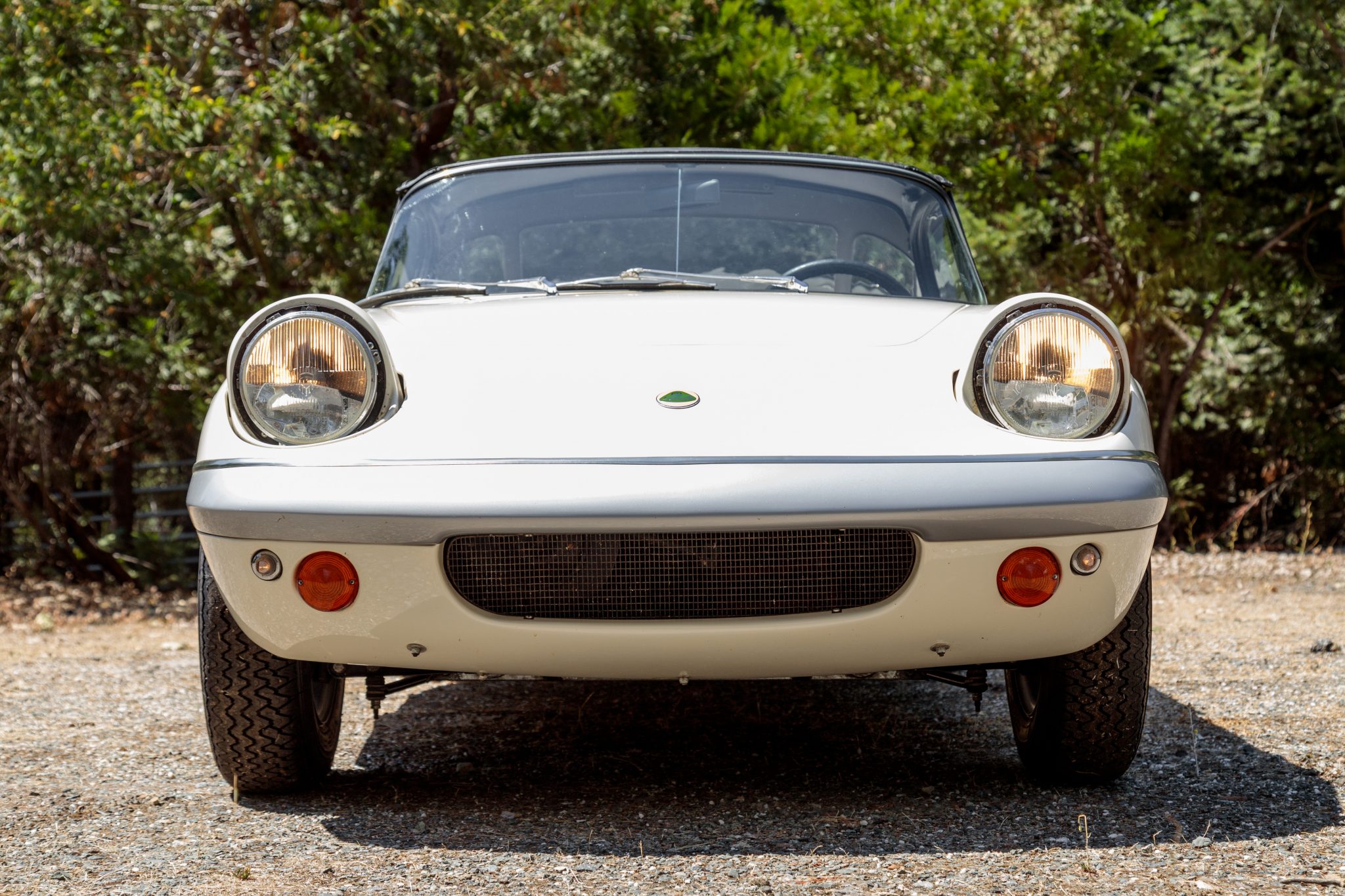 Ventilated 13″ steel wheels wear chrome Lotus-stamped covers and are mounted with 155-series Michelin XAS tires, which the seller mounted in June 2020. The suspension and brakes were overhauled by the previous owner, at which point replacement factory control arms were installed.
