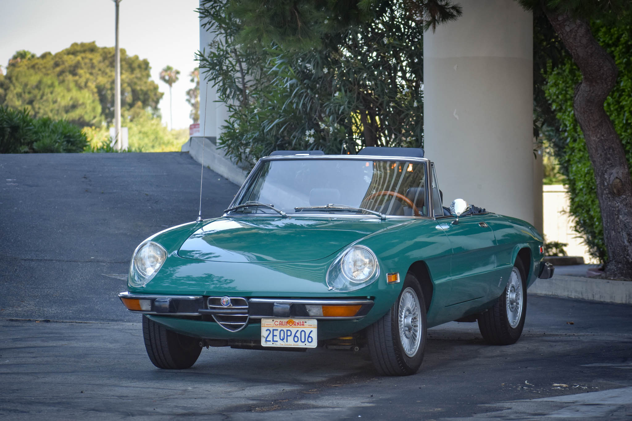Silver 14″ Campagnolo wheels wear Alfa Romeo center caps and were fitted with 185/70 Michelin Defender tires in 2015. The suspension was overhauled with new springs, bushings, and dampers in 2001 at 65k miles, and new front lower control arm bushings were installed in 2016. The convertible top has been replaced and is shown both raised and lowered in the image gallery.