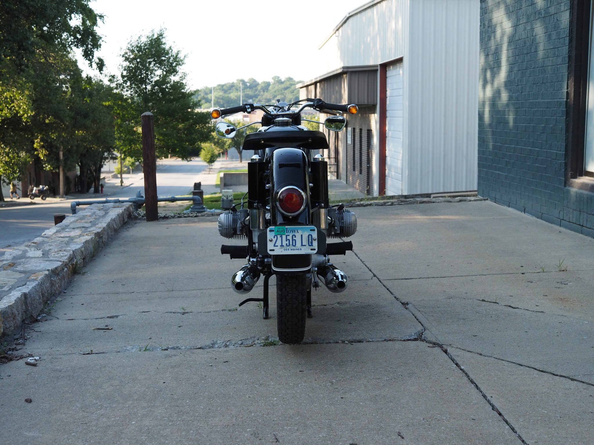 Wire-spoke wheels with replacement bearings wear older 18″ tires, and corrosion is noted on the rear axle. Suspension consists of an Earles fork up front as well as dual rear shocks mounted to the driveshaft enclosure on the right and the swingarm on the left. Braking is from drums at both ends, which were relined in 2007.