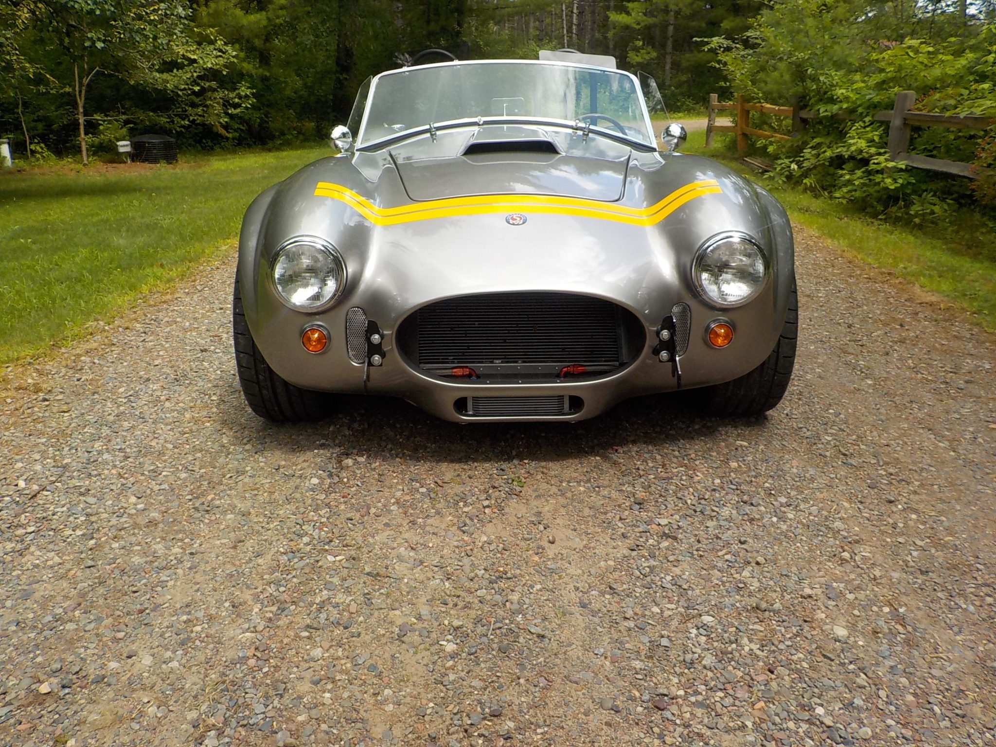Halibrand-style 17″ wheels measure 9″ wide up front and 10.5″ at the rear, and feature faux knock-off spinners as well as 245/45 front and 315/35 rear Mickey Thompson Street Comp tires. Braking is handled by 11″ Ford Mustang GT rotors with PBR aluminum calipers up front, 11.65″ rotors with single-piston versions at the rear, and dual master cylinders with dual reservoirs. Brake bias is adjustable from inside the cabin. The car rides on tubular front A-arms and three-link rear suspension with Koni coilovers.