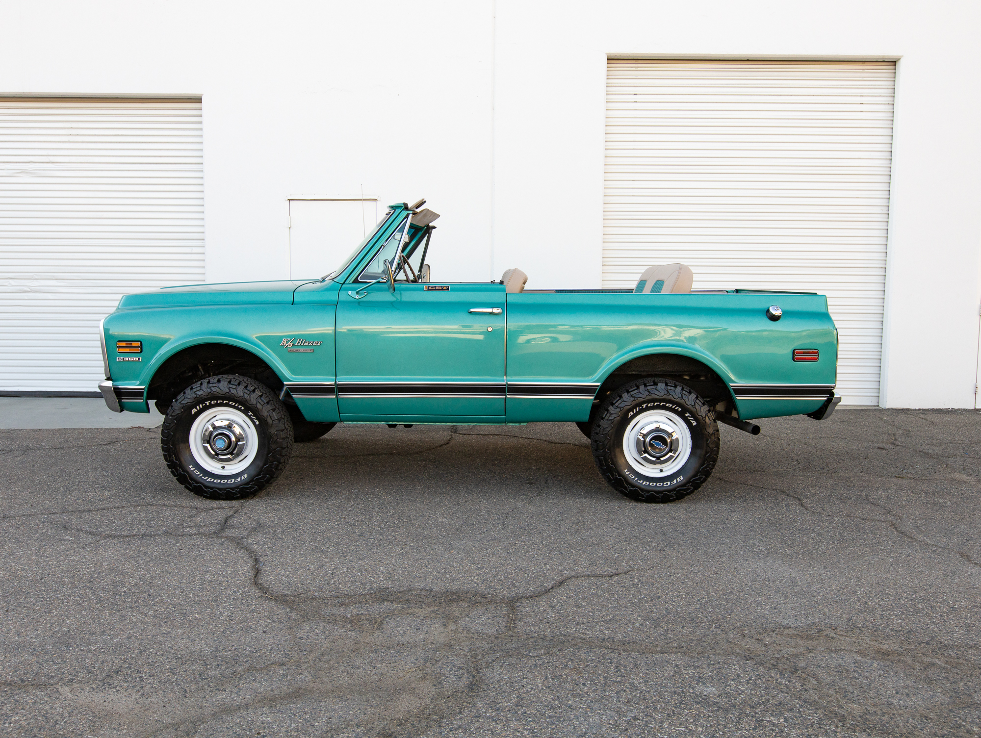 White 15″ steel wheels wear chrome hubcaps and feature locking front hubs. BFGoodrich All-Terrain T/A tires were installed during current ownership, and the seller reports that the brakes were overhauled with a replacement booster and master cylinder. Deaver leaf springs and Bilstein 5100-series shocks are also installed.