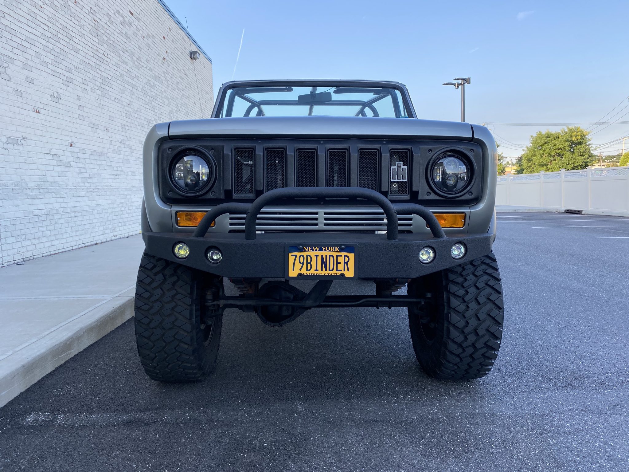 Black 18″ Mayhem Assault wheels are fitted with 35×12.5″ Nitto Trail Grappler M/T tires at each corner. A matching spare and a jerry can are mounted on the swing-out carrier at the rear. Additional equipment includes Dana 44 front and rear axles, Bilstein shocks, stainless steel brake lines, and locking front Warn hubs.