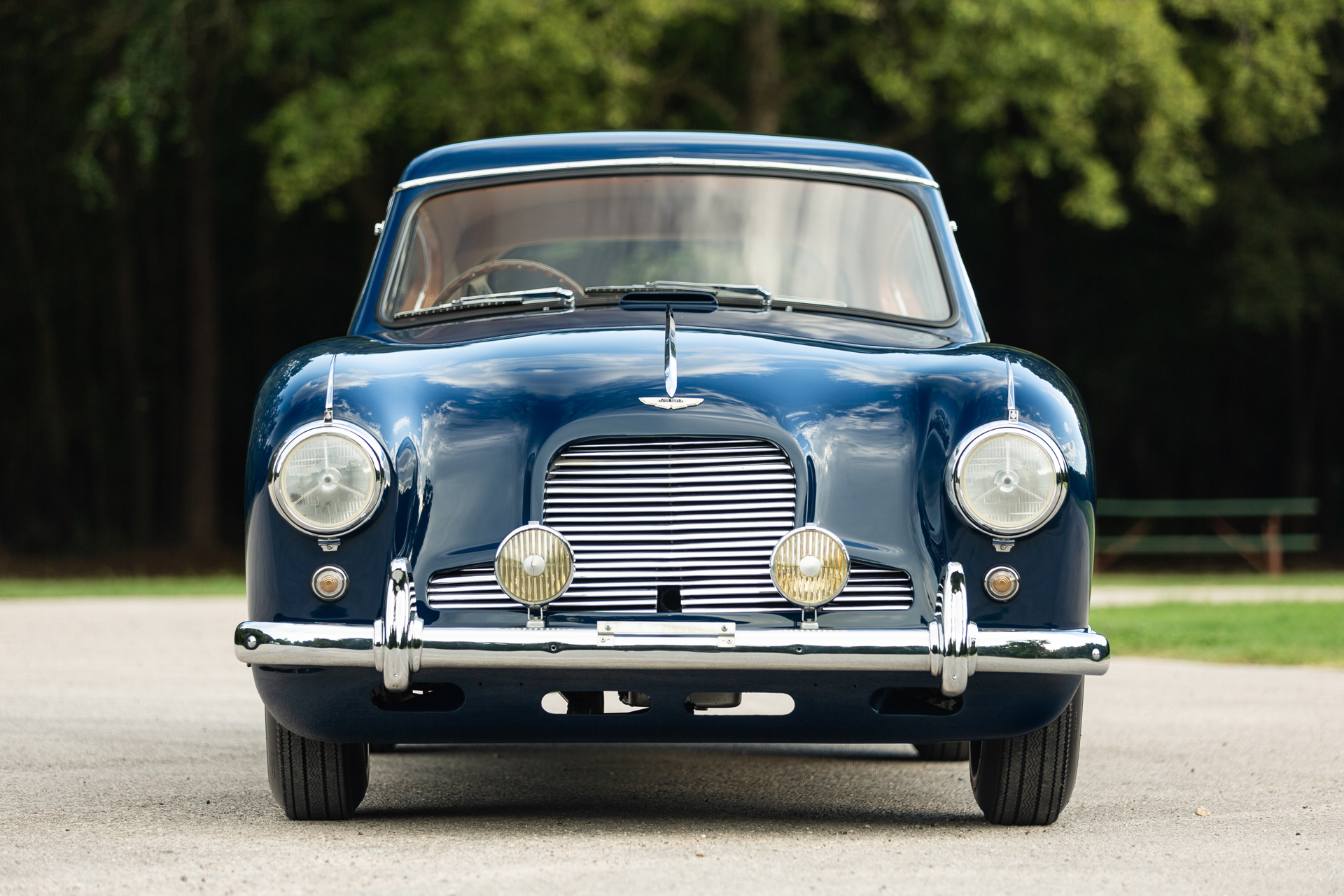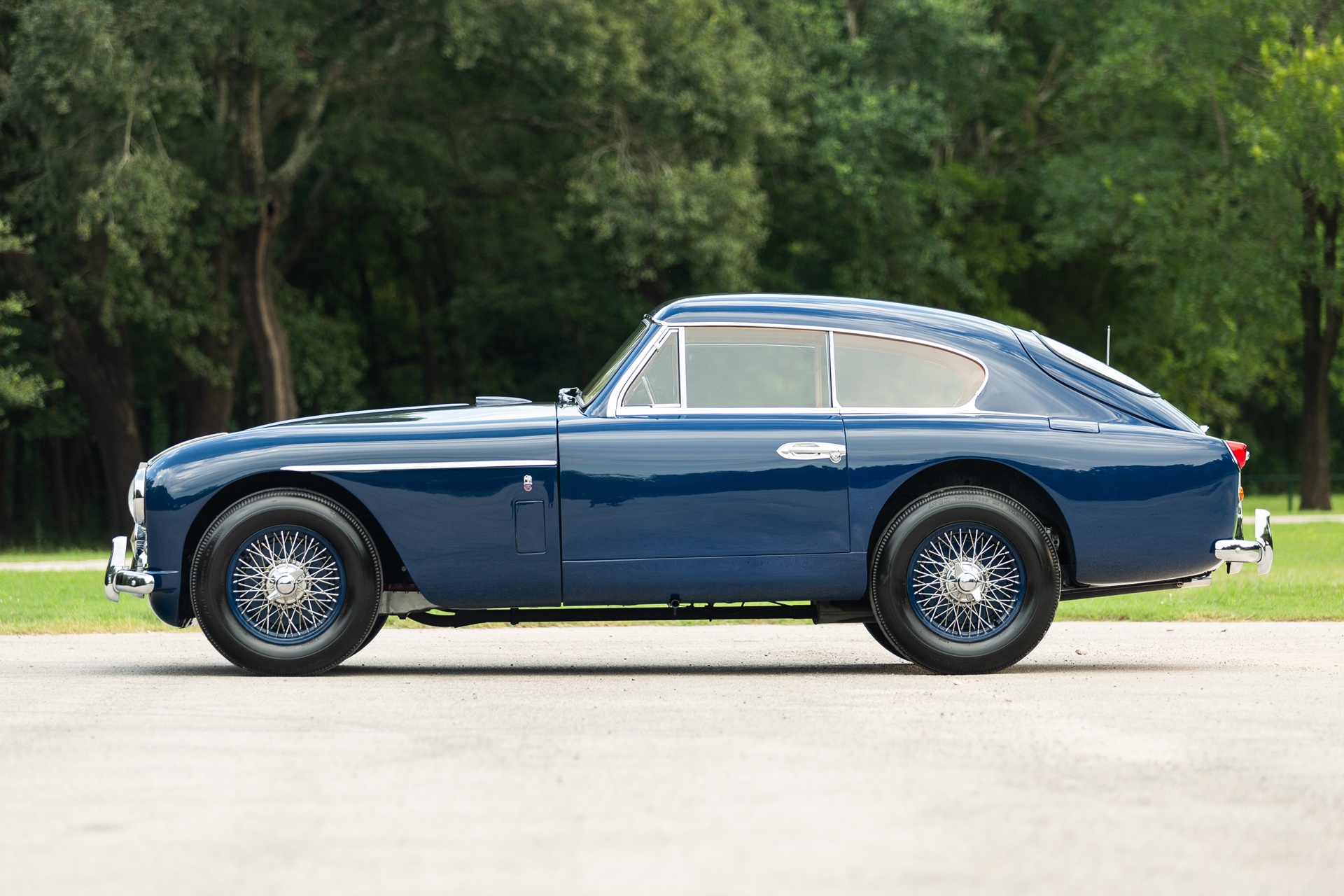 Originally finished in dark gray, the aluminum bodywork on this car was repainted blue during a refurbishment performed several years ago. Closeups in the photo gallery show the finish, trim, glass etchings, and lighting. The latter includes Lucas blue-dot headlamps and Raydyot fog lamps. A vintage Orange County Auto Club water-transfer decal is retained on the rear hatch glass.