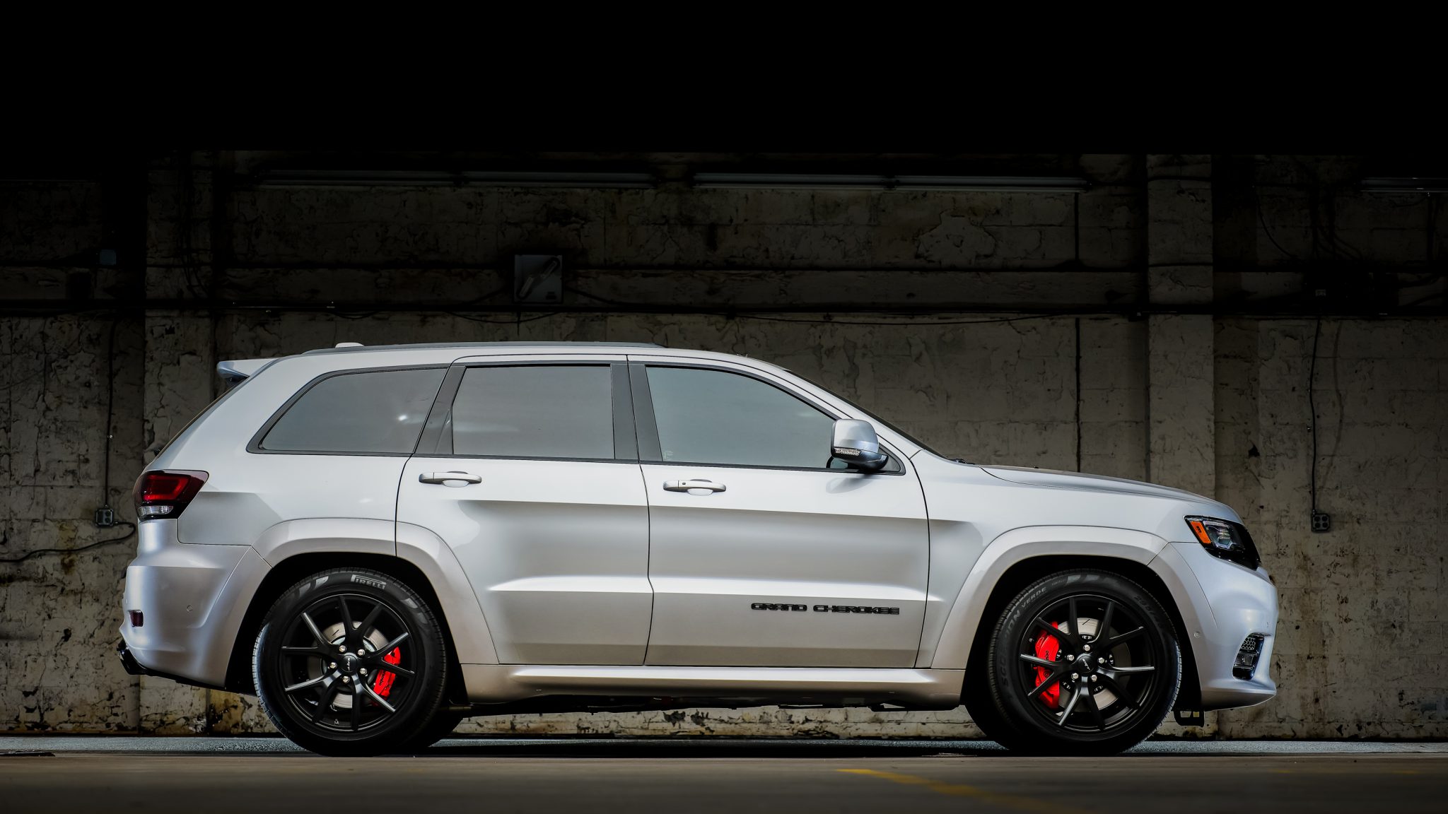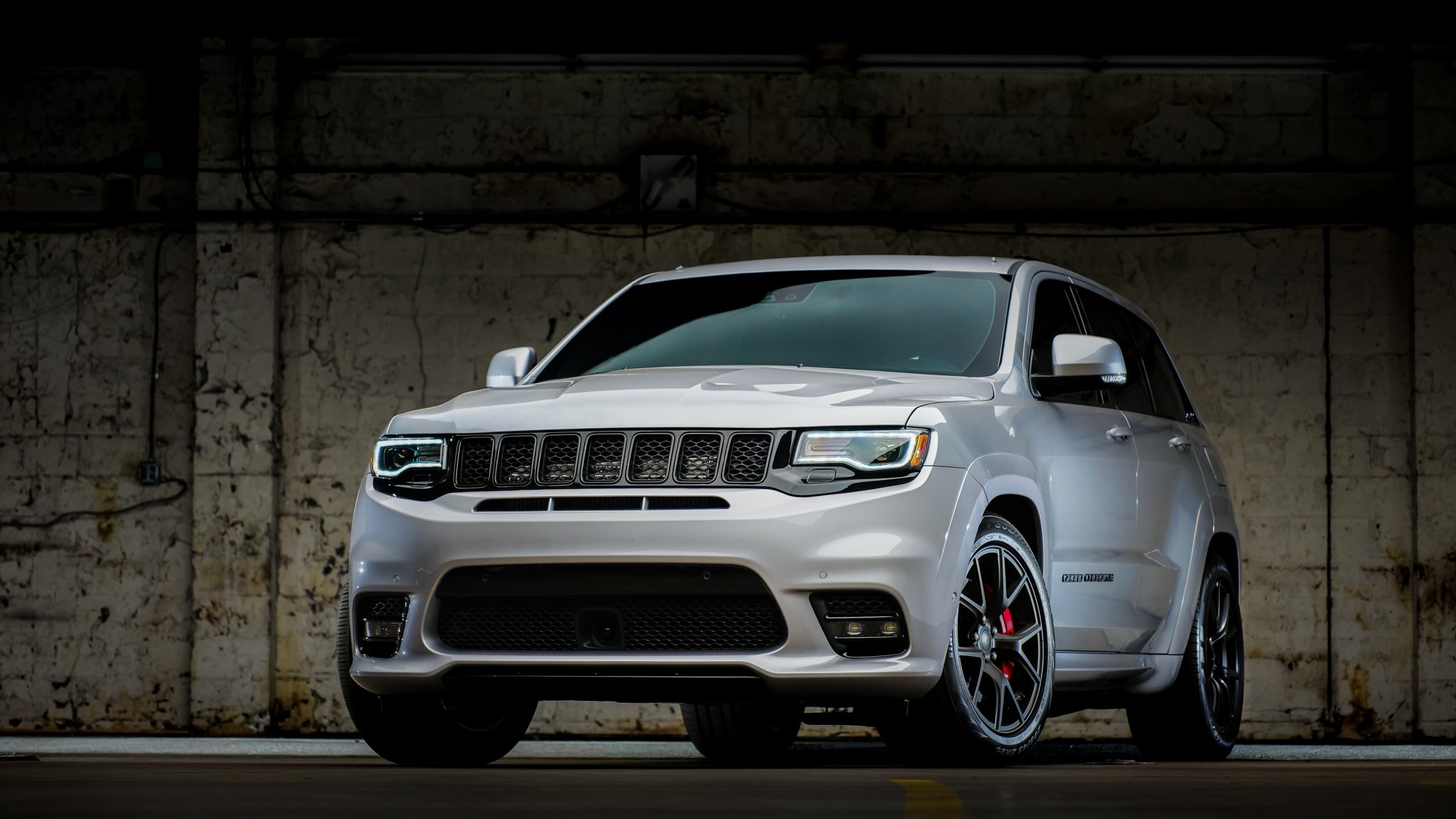 Black-finished 20″ wheels feature SRT center caps and wear 295/45 Pirelli Scorpion Verde tires. The suspension is modified with lowering springs, and braking is from red-finished Brembo calipers and vented discs at all four corners.