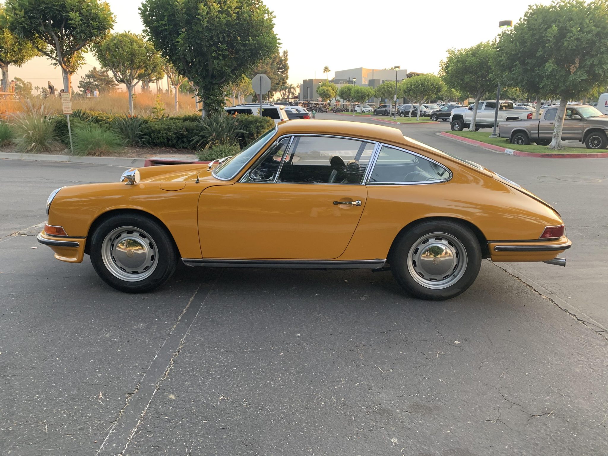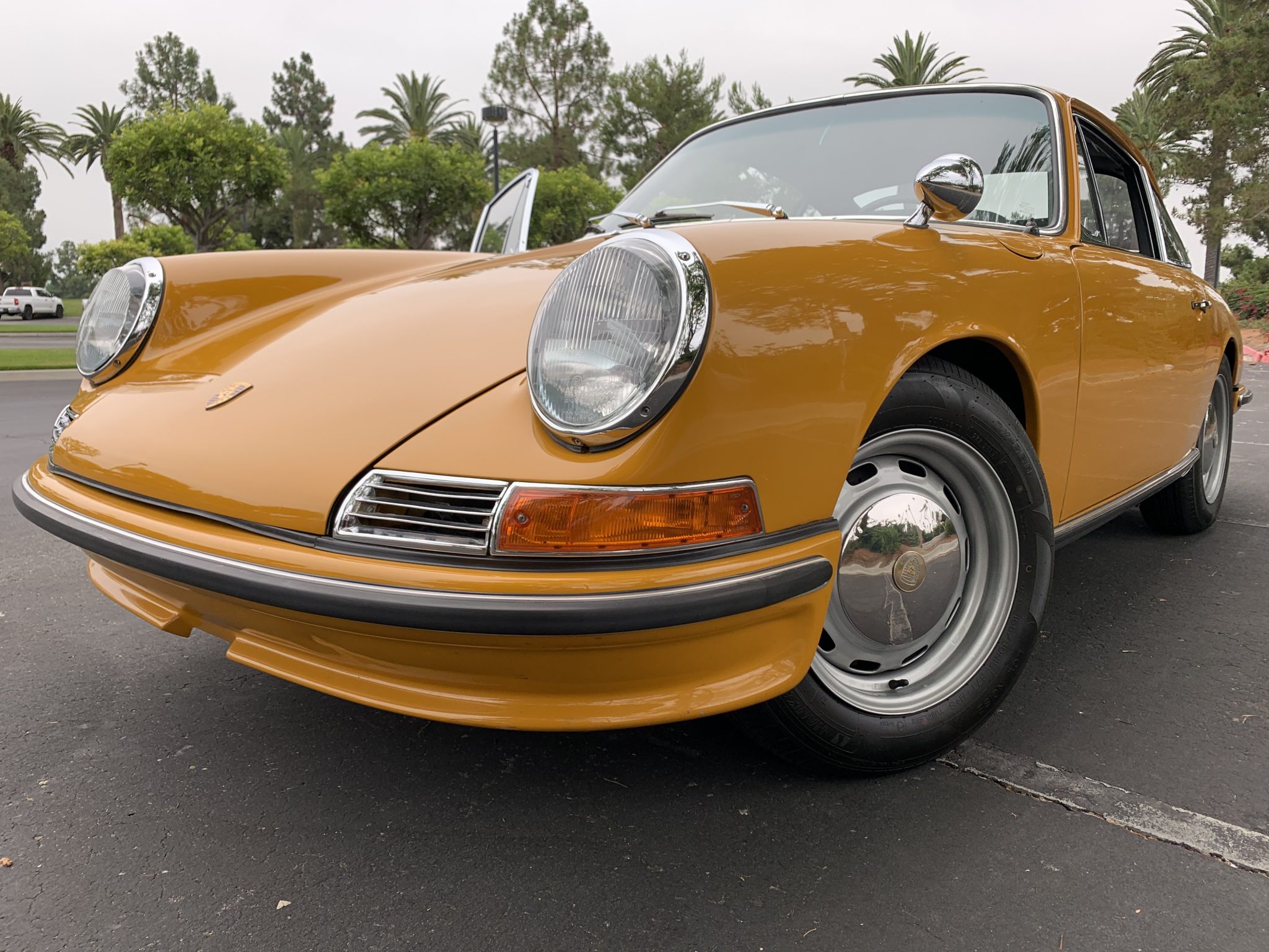 15″ steel wheels were powder-coated silver in 2019 and wear polished hubcaps with Porsche crests as well as 165/80 Nankang tires. Four-wheel disc brakes were standard equipment on the 912, and this example is fitted with cross-drilled and ventilated rotors at all four corners.