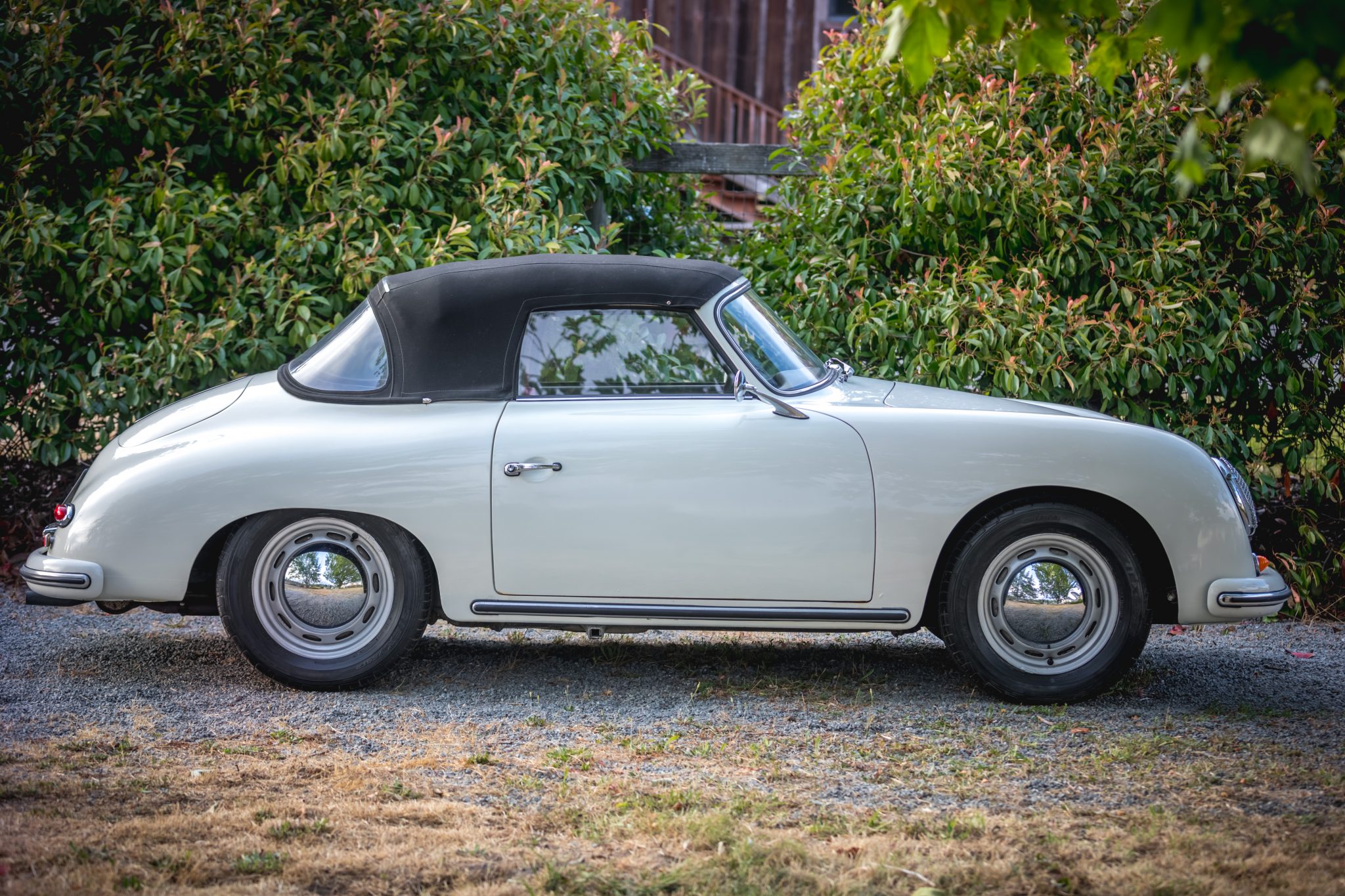 The black convertible top features a vinyl rear window and was installed during the 1989 restoration. Ventilated 15″ steel wheels wear chrome hubcaps and 195/65 Falken Ziex ZE912 tires. A chrome spare with Nexen rubber is housed in the front trunk. The seller describes a hard pedal as well as pulling to one side under braking.
