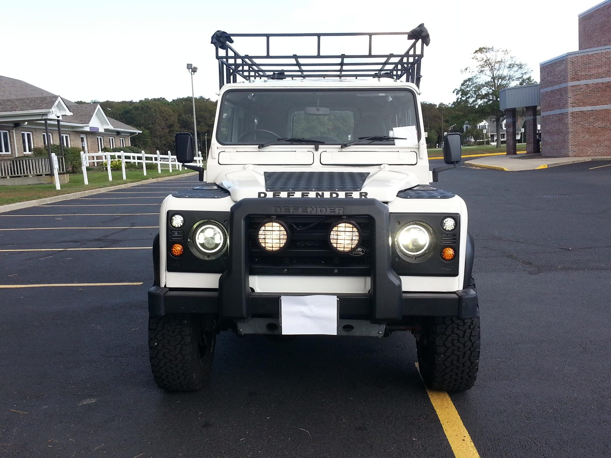 Aftermarket Sawtooth alloy wheels are finished in gloss black and wear BFGoodrich All-Terrain KO2 tires. Fitted equipment includes a Terrafirma lifted suspension, a Terrafirma steering damper, and a steering guard. Work performed in 2019 included the installation of replacement swivel seals.