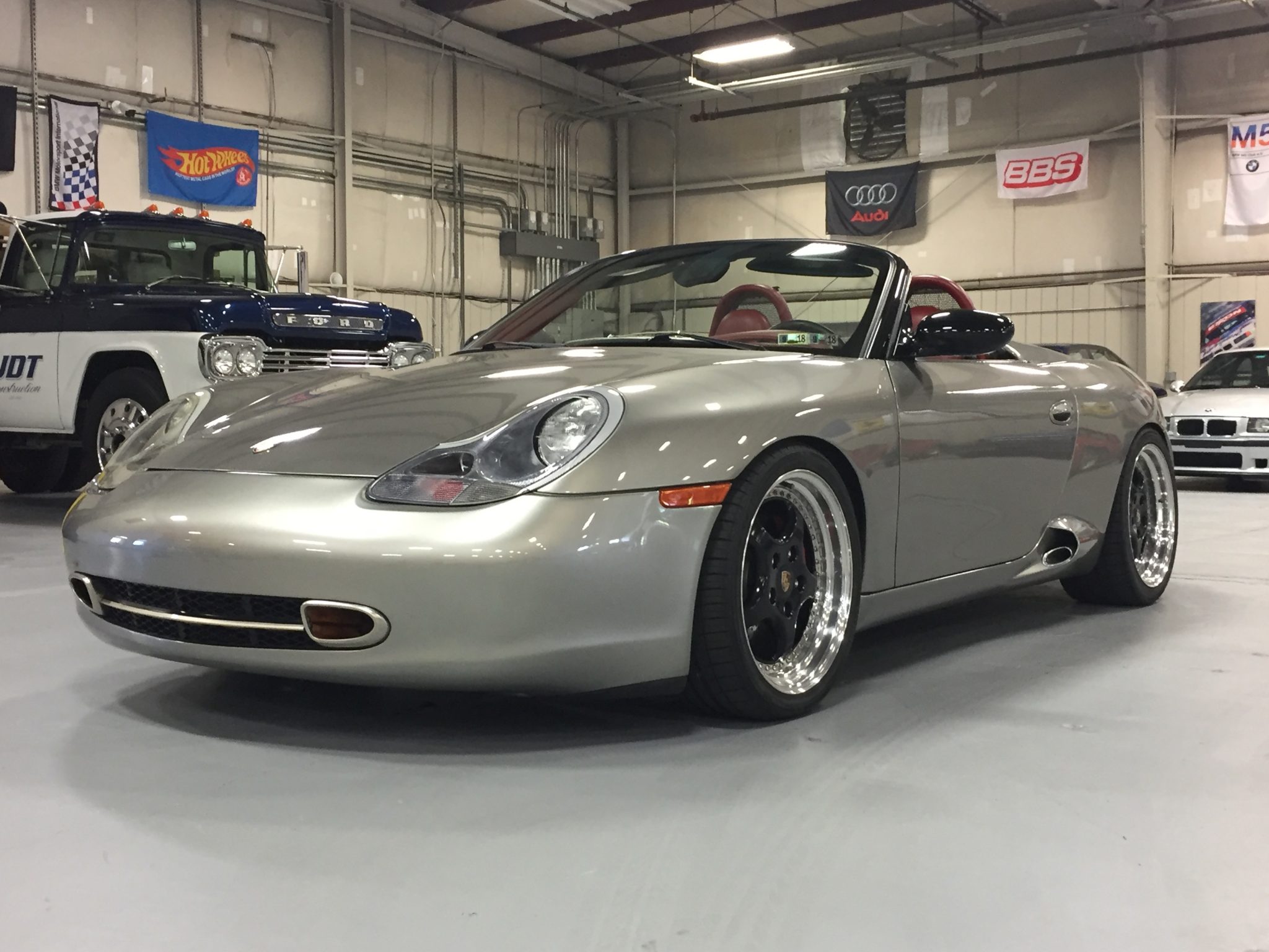 Staggered-width 18″ RH three-piece wheels with black centers and polished lips are wrapped in Kumho Ecsta tires measuring 235/40 in front and 265/35 at the rear. The seller reports that the suspension components have been replaced, including Bilstein sport shocks and H&R lowering springs.