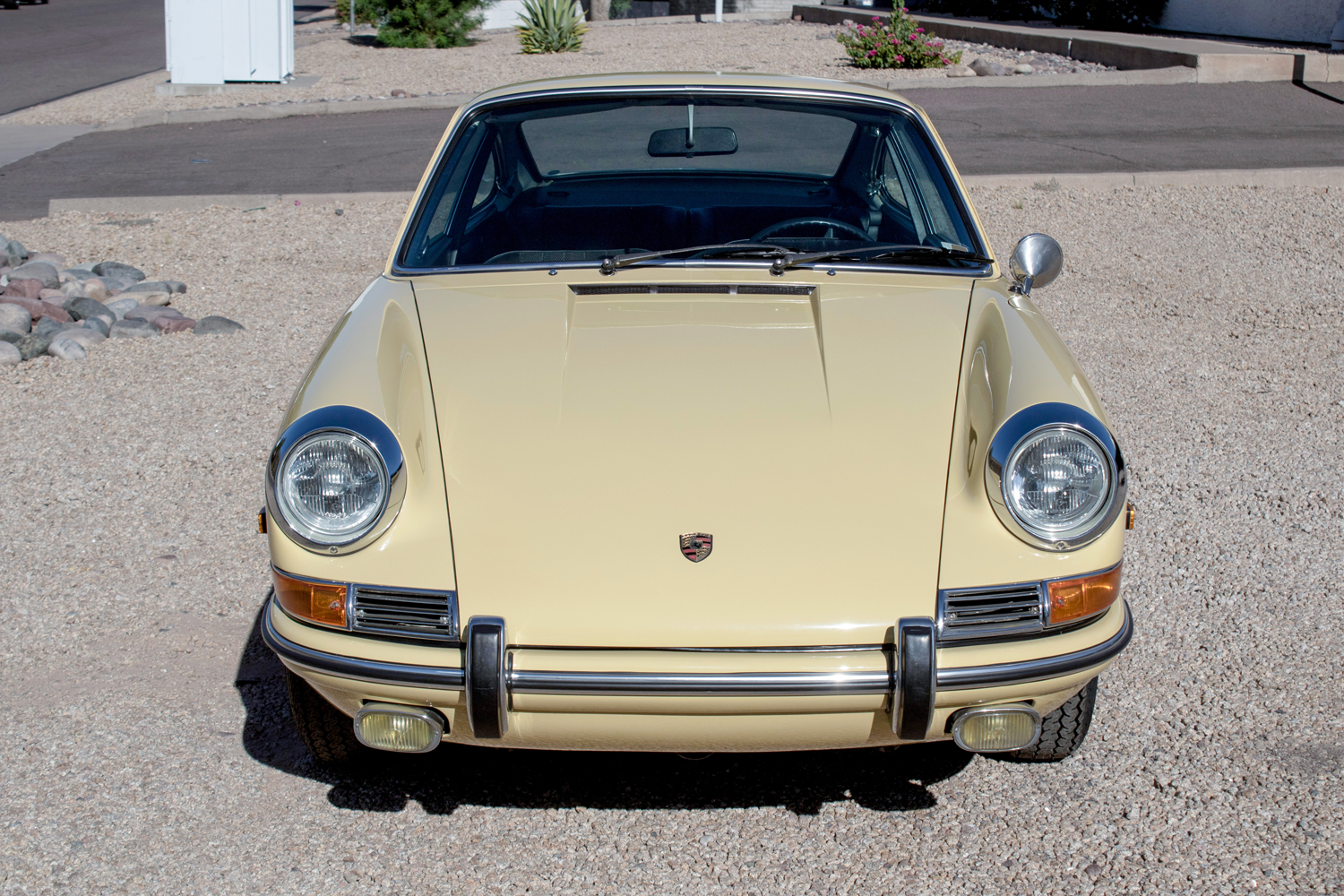 Chrome 15″ steel wheels are fitted with Porsche-crested hubcaps and wear Vredestein Sprint Classic tires that are said to have recently been replaced. Four-wheel disc brakes were standard equipment on the 912.