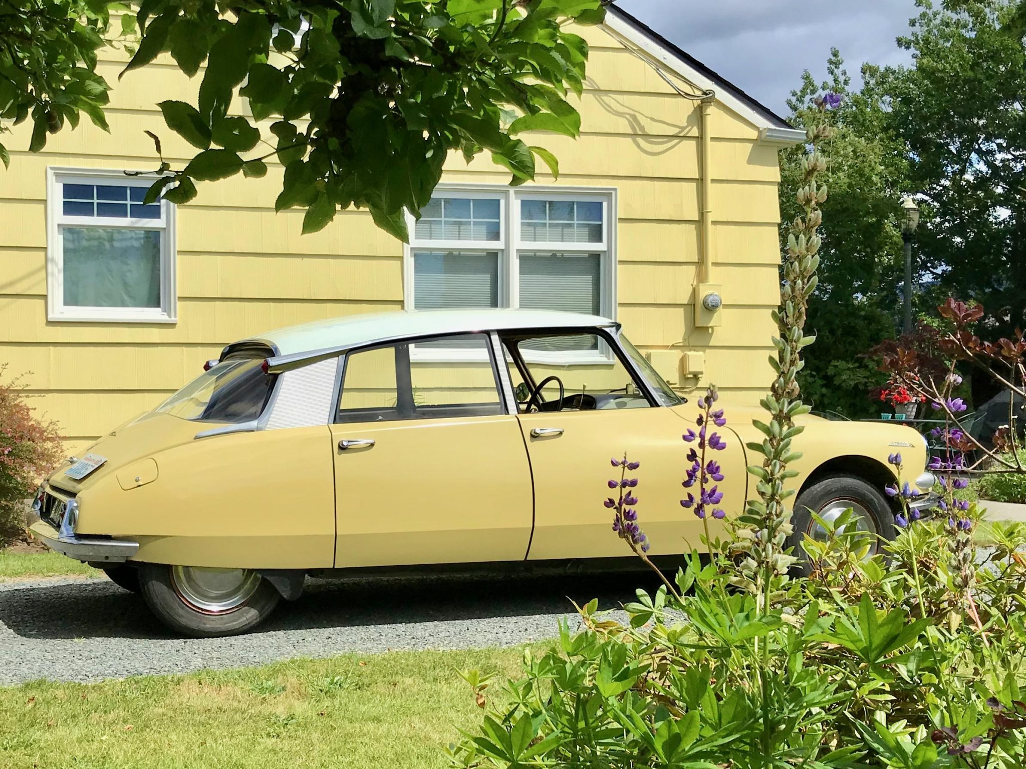 The DS rode on a 123″ wheelbase and featured a rear track 8″ narrower than the front. Single-bolt steel wheels are finished in Rouille and wear chrome covers and Michelin X radial tires that were installed under the seller’s ownership, sized 165x400mm all around. A matching spare with older Michelin rubber is mounted ahead of the engine along with a factory tool kit. Standard features include hydropneumatic suspension with automatic leveling and variable ground clearance, power steering, and hydraulically-assisted, inboard-mounted front disc brakes that were fitted with new pads. Additional service included replacement of the hydropneumatic sphere diaphragms as well as a hydraulic pump rebuild.