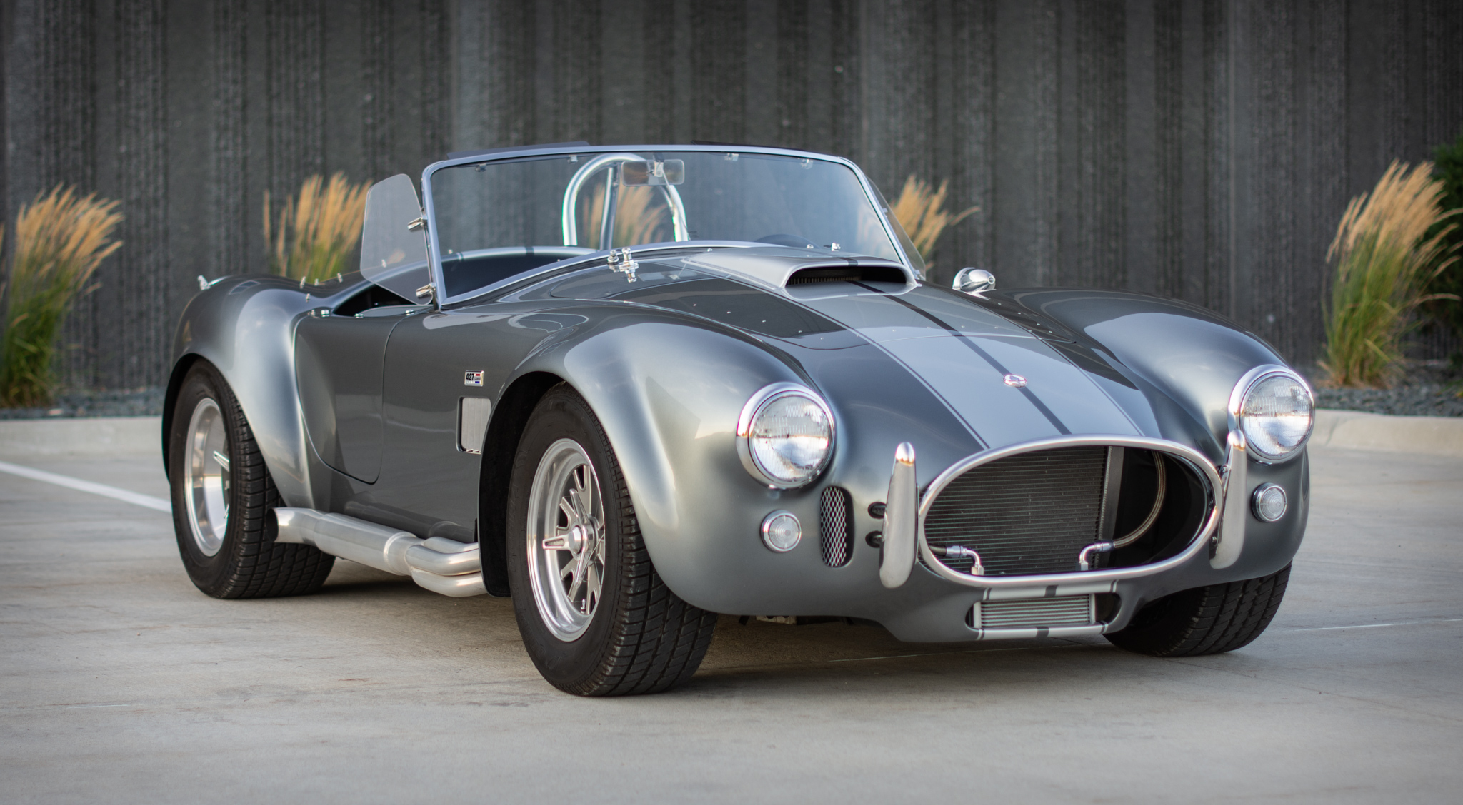 Halibrand-style 15” wheels feature knock-off hubs and polished lips. They are wrapped in Cooper Cobra tires measuring 245/60 up front and 295/50 at the rear and showing 2016 and 2017 date codes. Braking is handled by power-assisted Wilwood disc brakes, and work in Spring 2018 is said to have included the replacement of tires and a rear wheel bearing, as well as flushing the brake fluid.