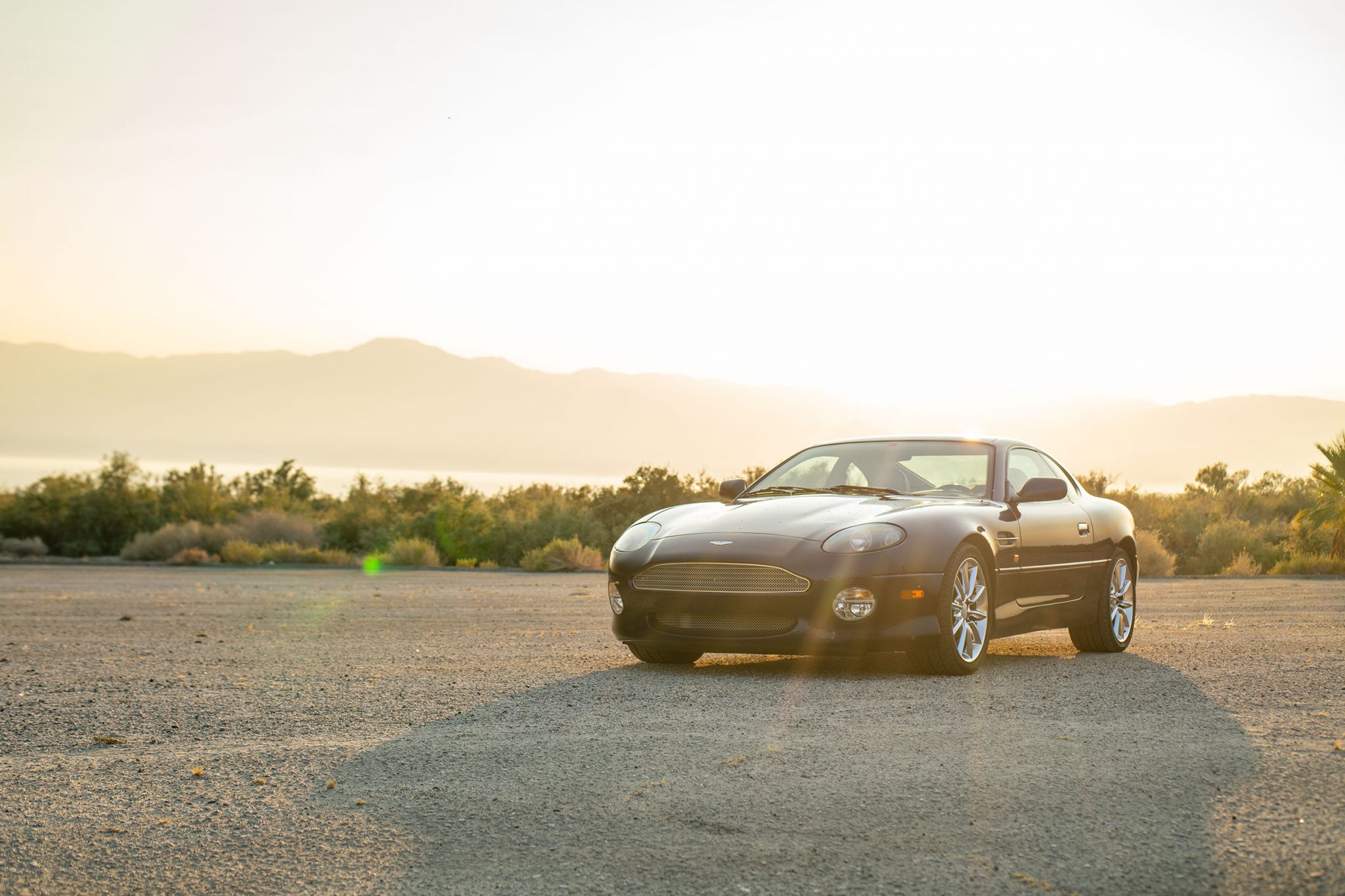 Polished 18″ wheels are wrapped in Yokohama Advan tires. Braking power is supplied by Aston Martin-branded calipers fitted over cross-drilled rotors at each corner.
